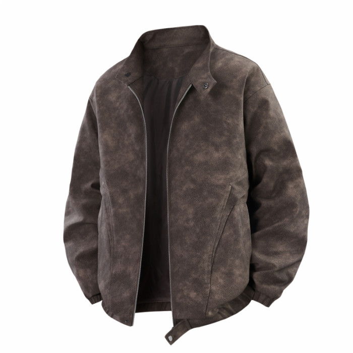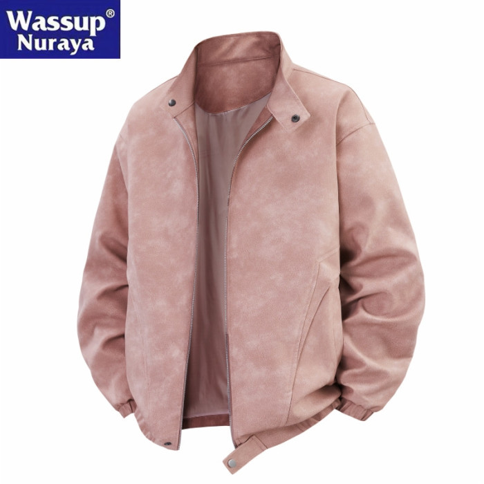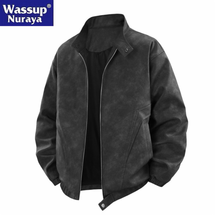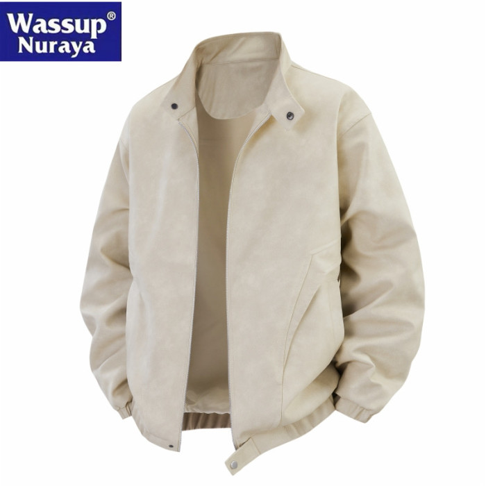 WASSUP Nuraya潮牌2025春秋男美式復古皮衣休閒夾克寬松立領外套