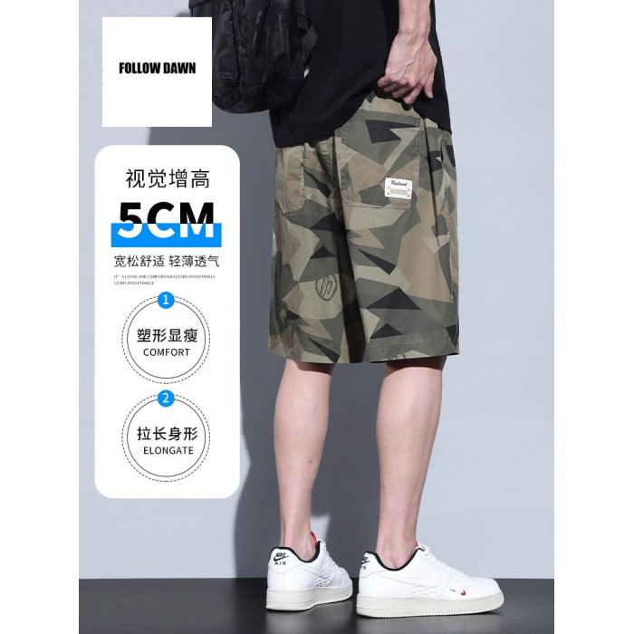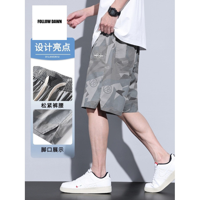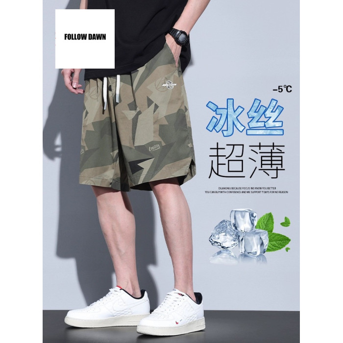 夏季冰絲運動五分短褲男士薄款寬松透氣休閒迷彩工裝褲潮