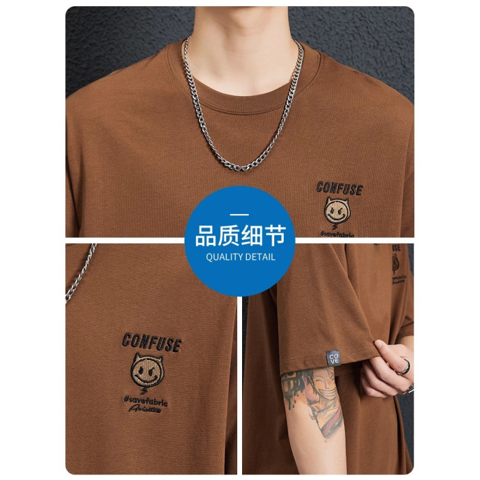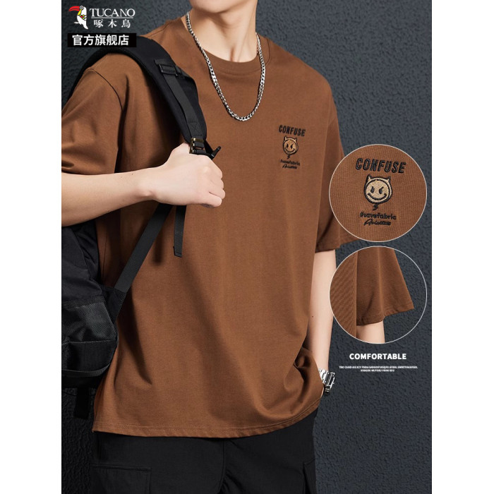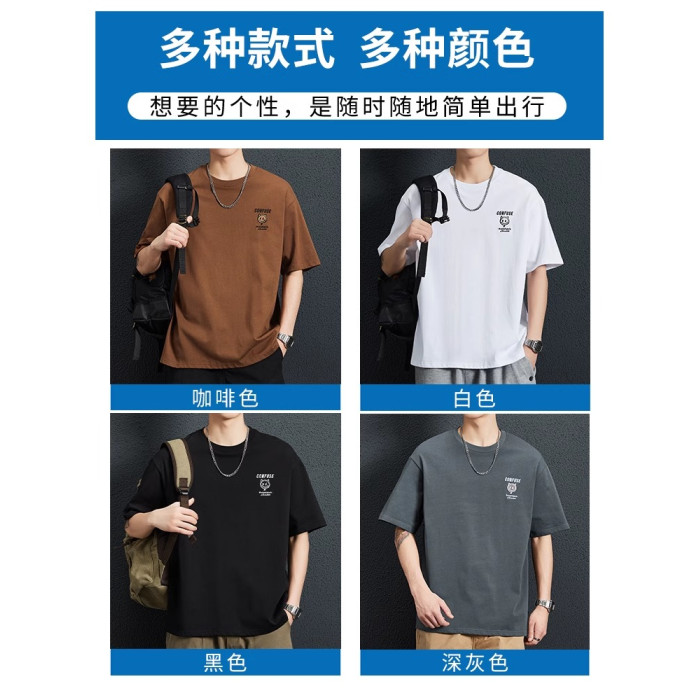 啄木鳥男士純棉短袖t恤夏季薄款寬松休閒印花圓領冰絲男裝上衣服K