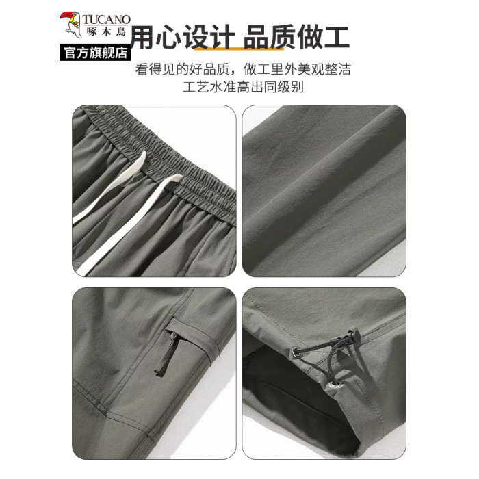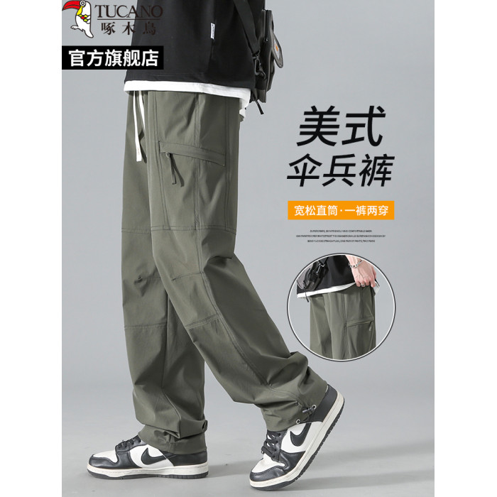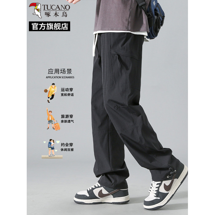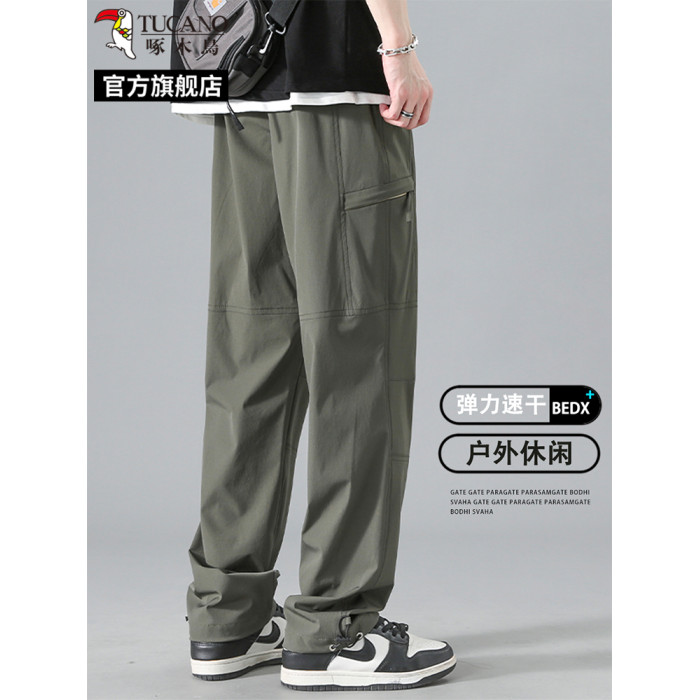 啄木鳥2025夏季薄款速乾美式褲子男士直筒休閒運動褲工裝沖鋒長褲