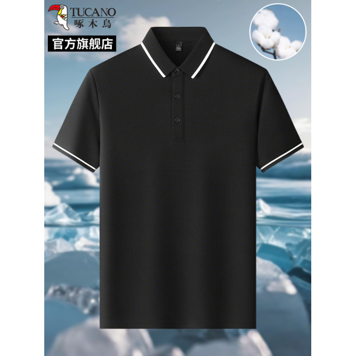 啄木鳥珠地棉短袖t恤男2025夏季新款百搭體恤上衣商務翻領POLO衫H