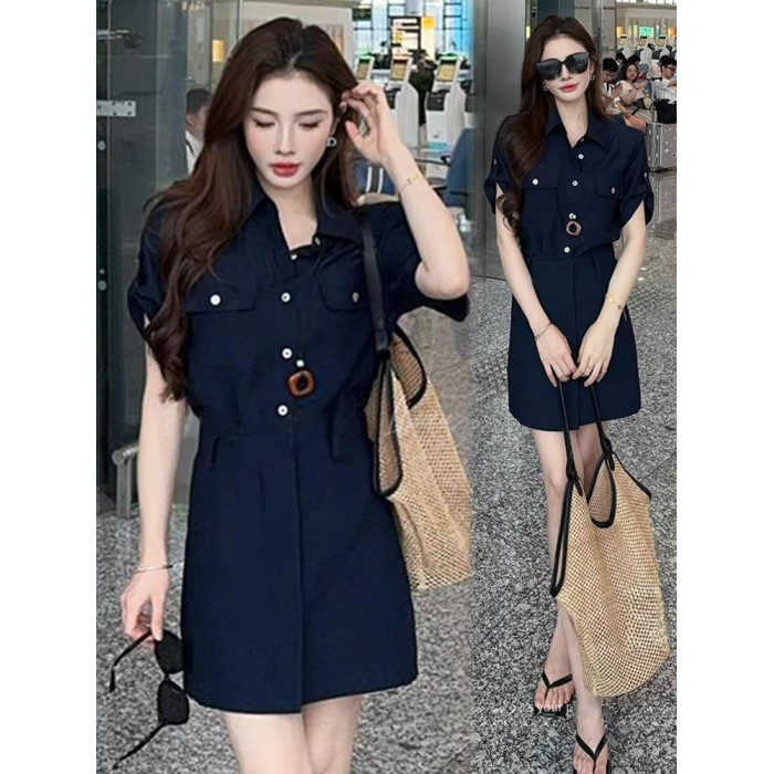 時尚圓領夏季連體衣褲減齡女神範顯瘦A字裙休閒風小個子收腰短裙