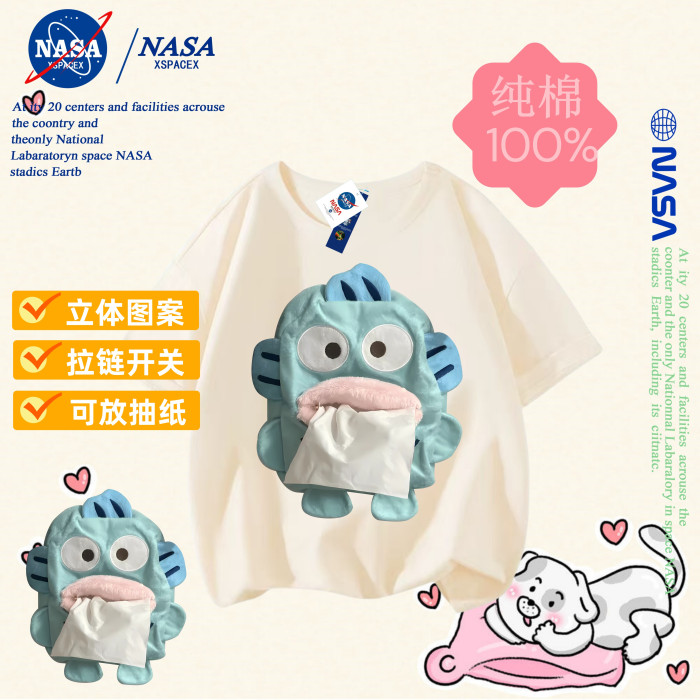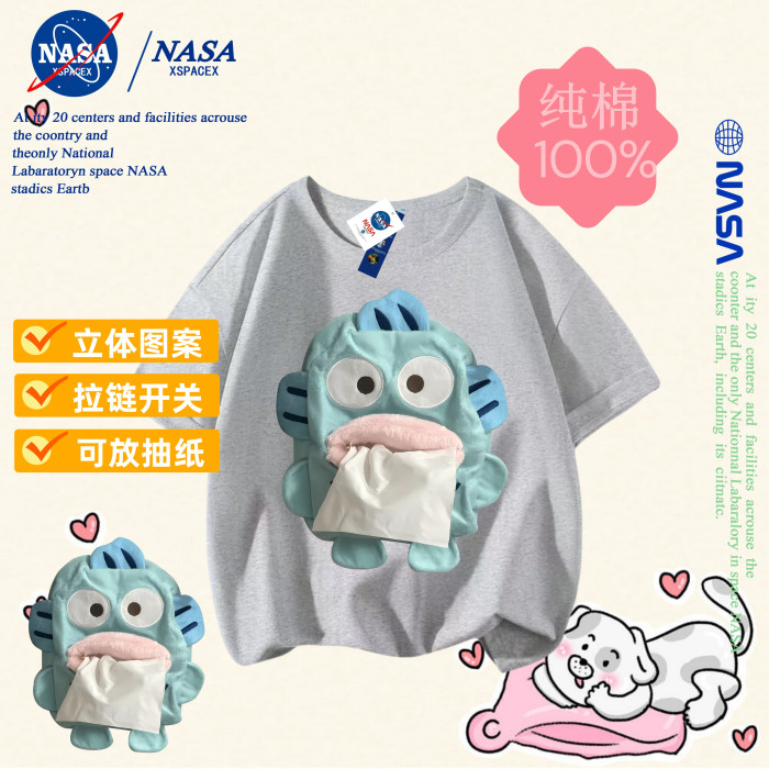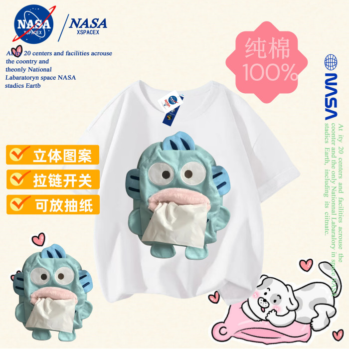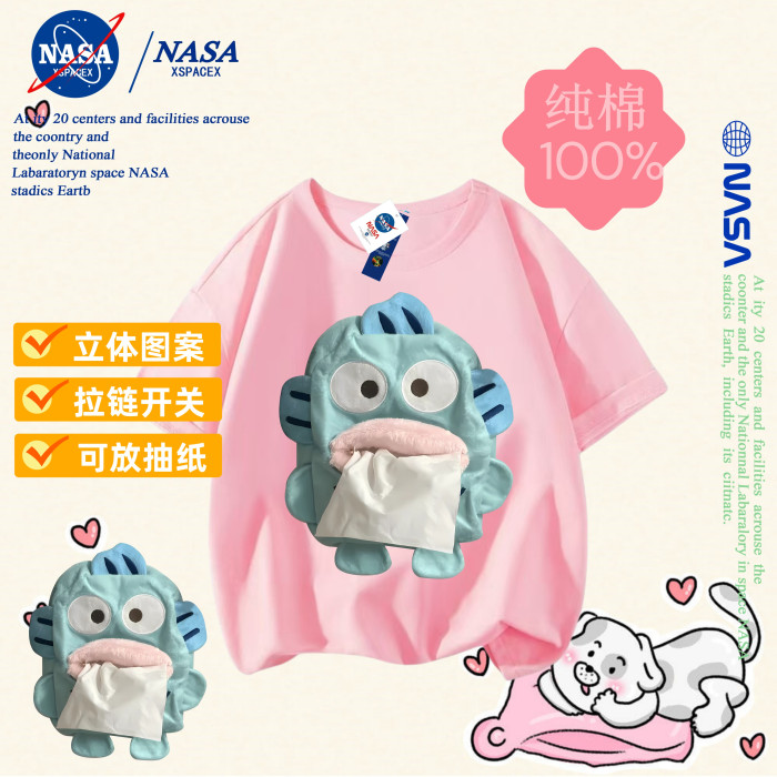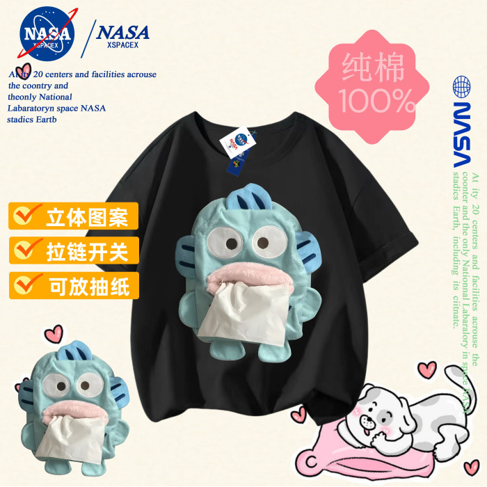 NASA聯名小醜魚抽紙純棉T恤兒童搞怪抽紙親子裝短袖男女童衣服夏