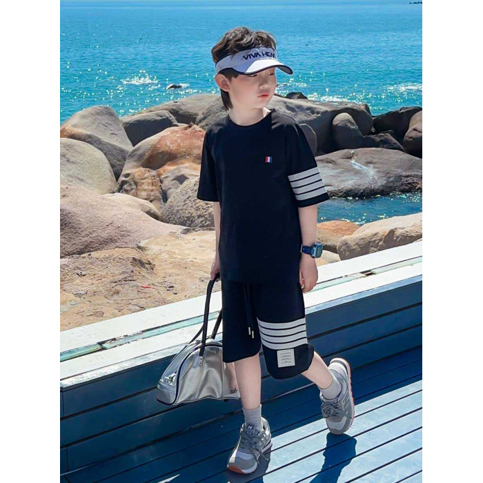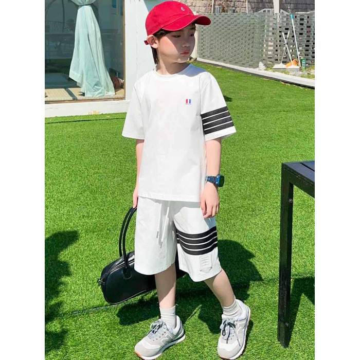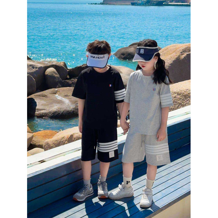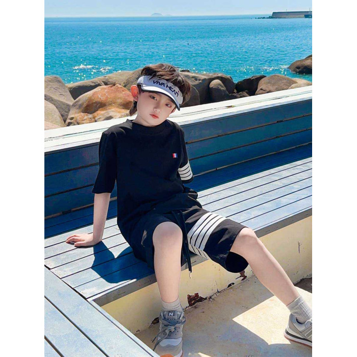 純棉寬松tb兒童短袖套裝夏季男童T恤2025時髦洋氣大童短褲親子裝