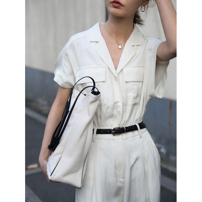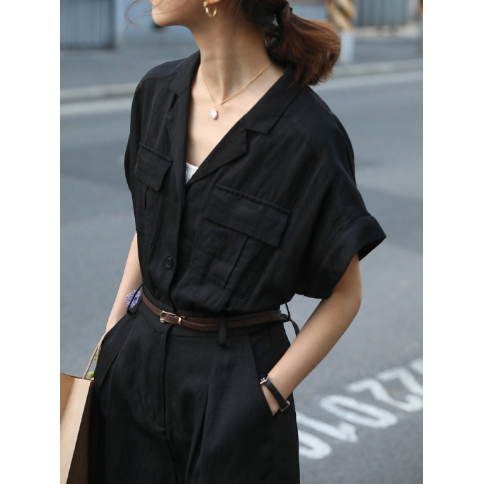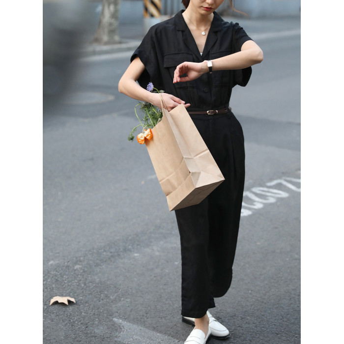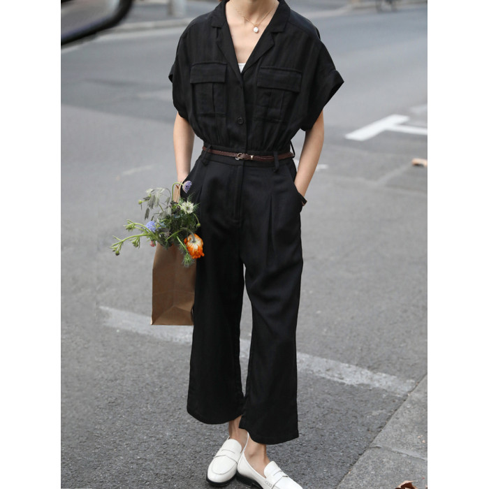 無拘2025年春新款氣質連身套裝夏修身時尚濶腿連體衣高腰連體褲女