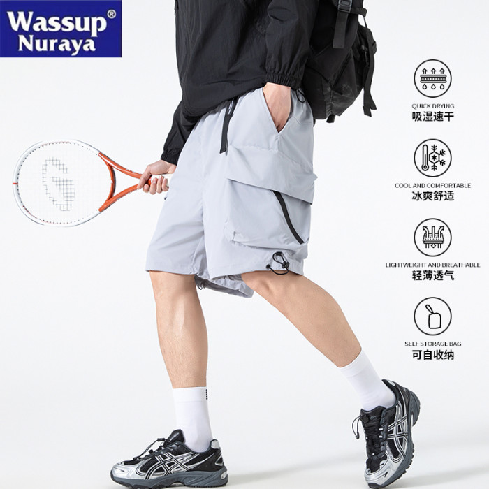 WASSUP NURAYA2025戶外工裝口袋寬松休閒透氣速乾青年五分中褲男