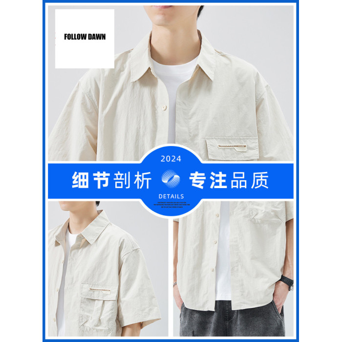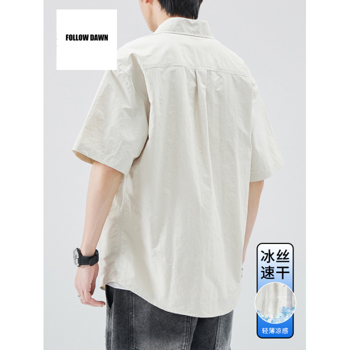 冰絲短袖襯衫男夏季新款潮流牌痞帥小衆設計高級感襯衣男
