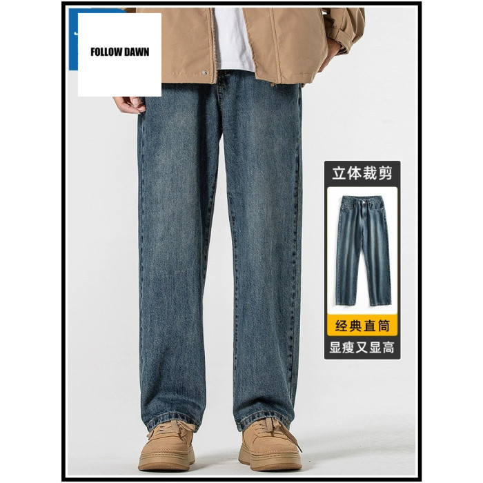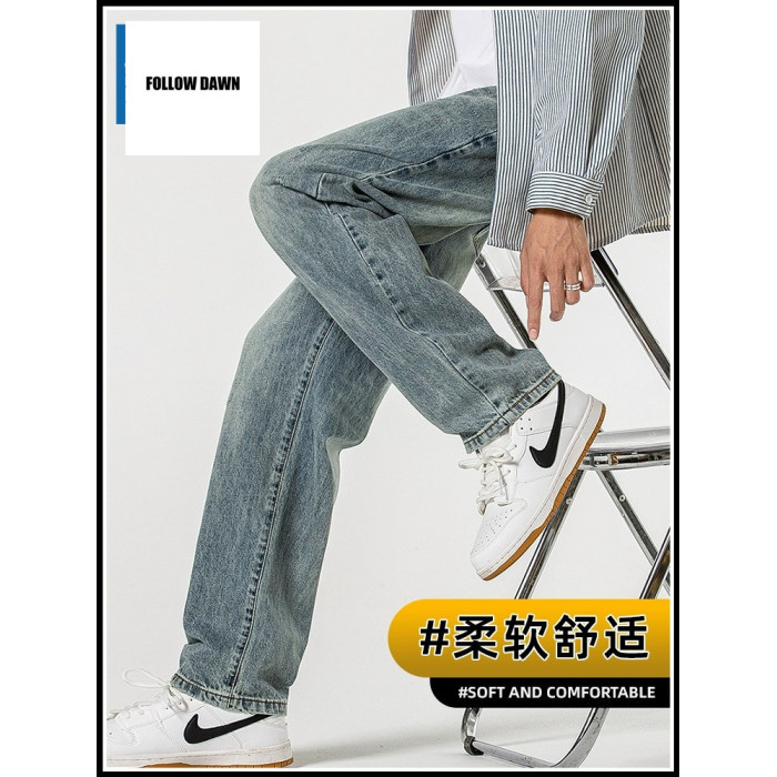 重磅美式牛仔褲男士春秋高街痞帥濶腿直筒寬松復古水洗長