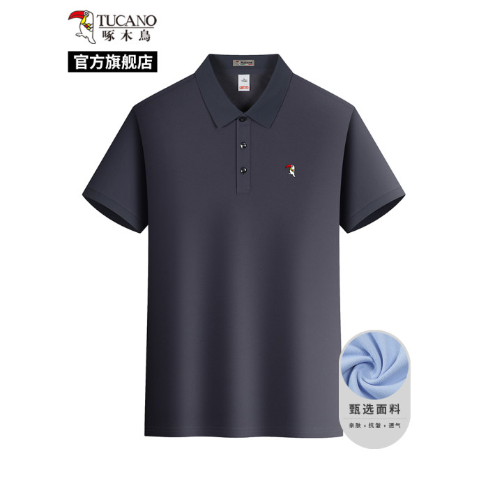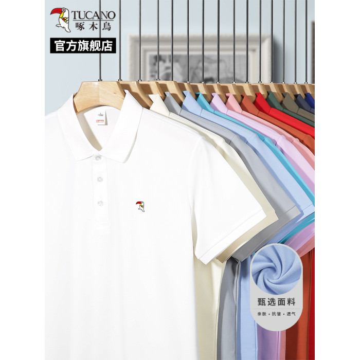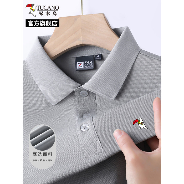 啄木鳥男士短袖polo衫2025夏季新款純色商務休閒免燙透氣翻領t恤C