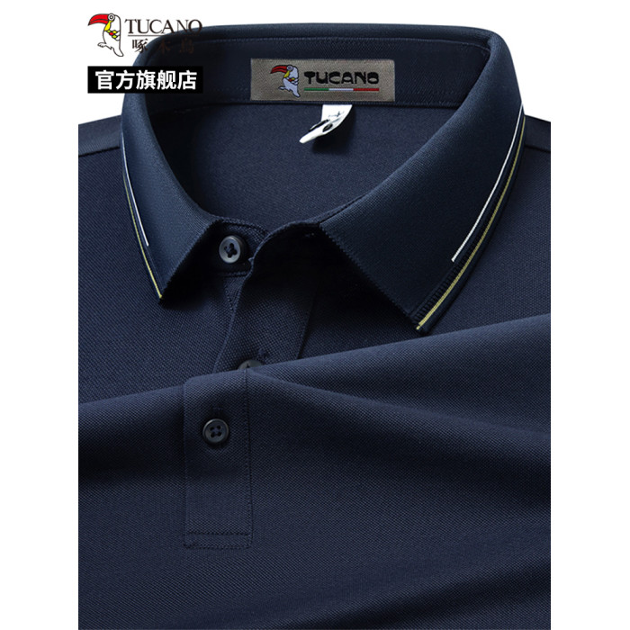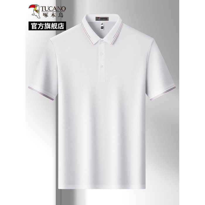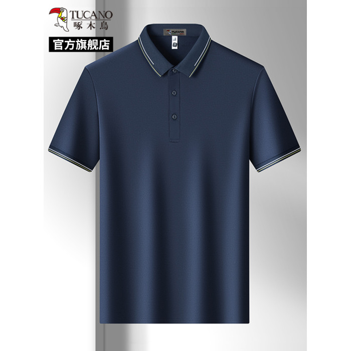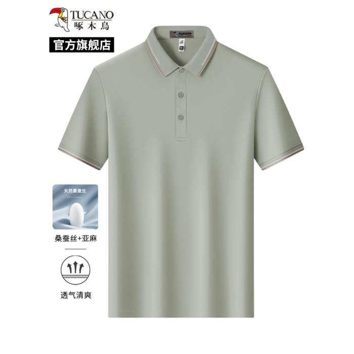 桑蠶絲亞麻啄木鳥中年男士翻領冰絲短袖t恤夏季2025爸爸裝Polo衫C