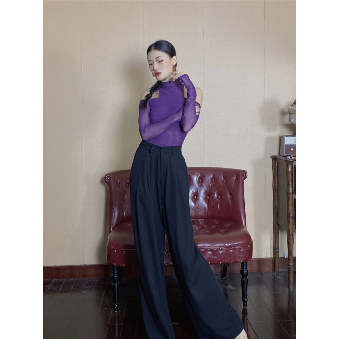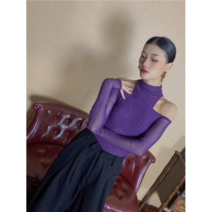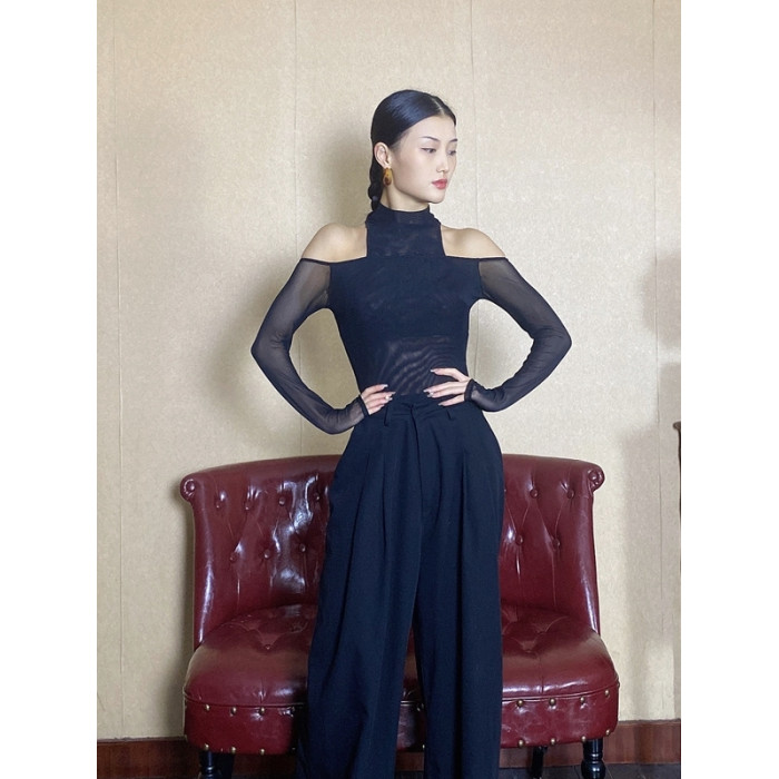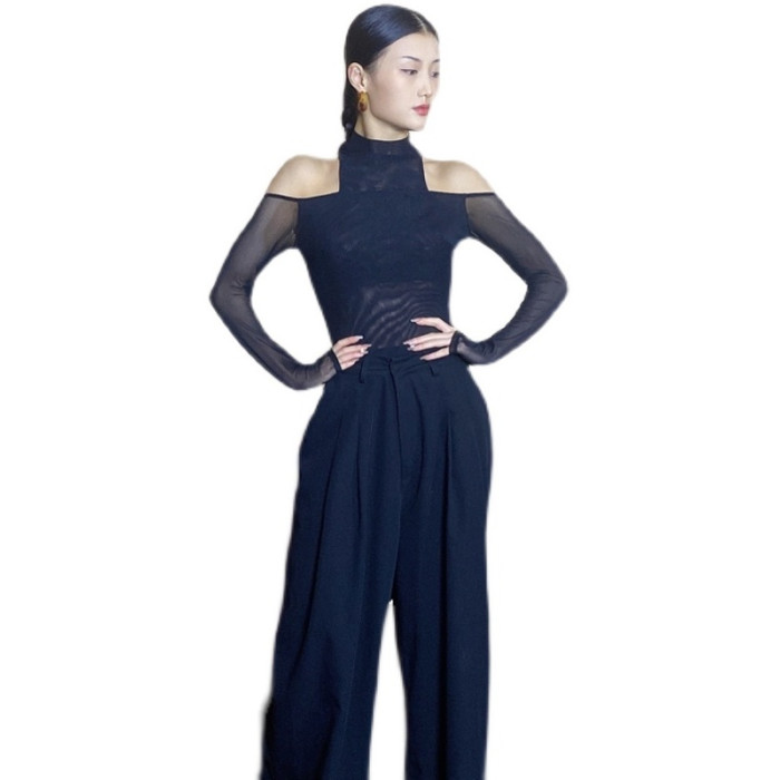 WYZ蓋蓋街舞爵士黑色百搭假兩件設計感網紗連體衣長袖高領穿搭