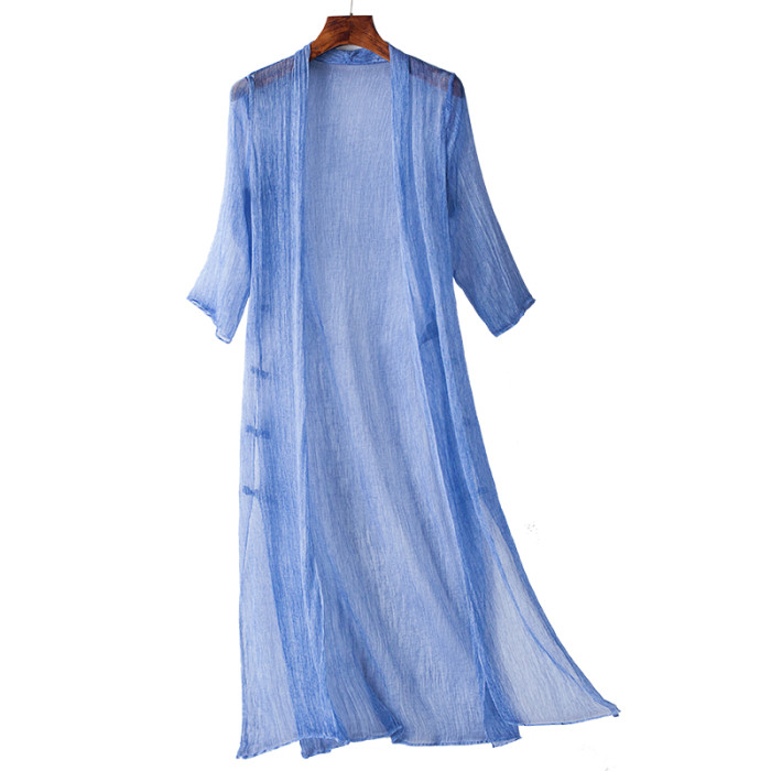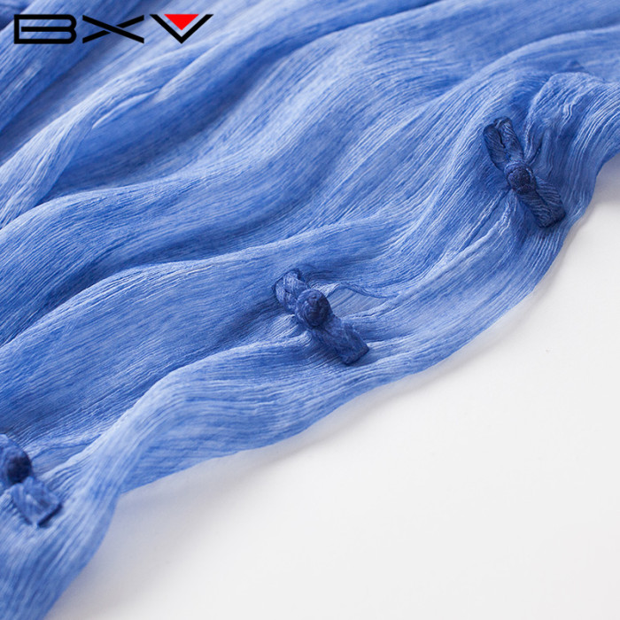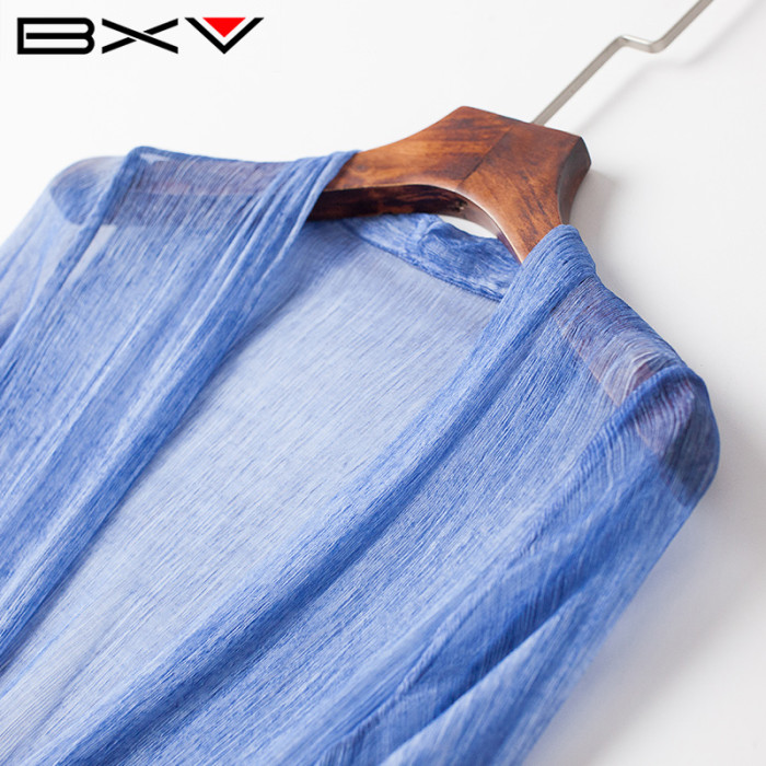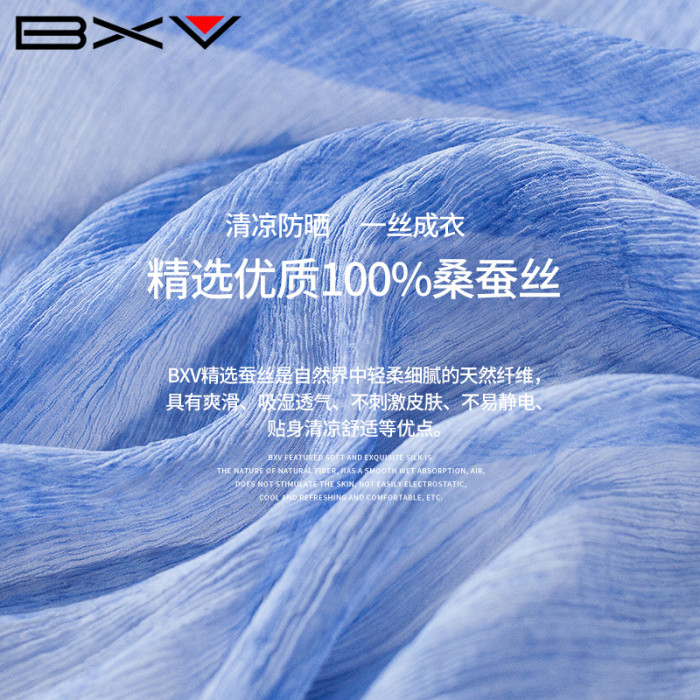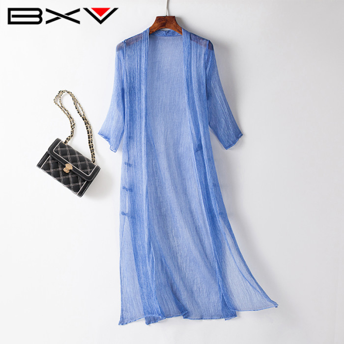 BXV新中式桑蠶絲開衫女2025夏新款盤釦真絲防曬衣薄外套長款披肩