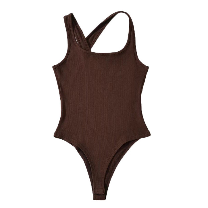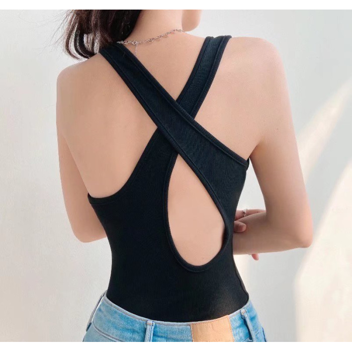 辣妹性感露背交叉背心連體衣女2025夏裝彈力緊身吊帶上衣打底衫潮