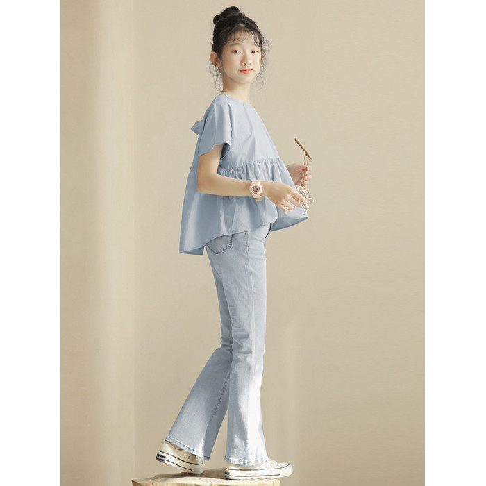 女童短袖T恤夏裝衣服韓版圓領寬松中大童純棉娃娃衫兒童短款上衣