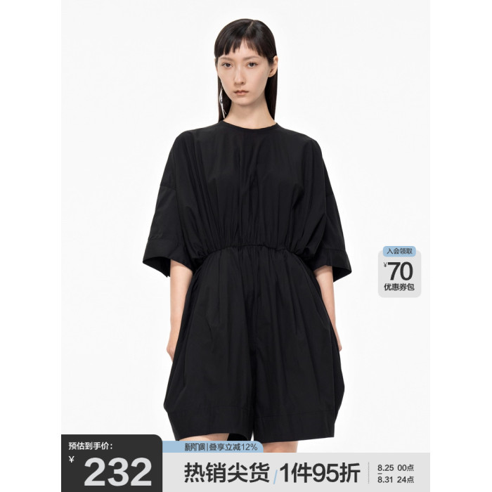 JNBY/江南布衣折釦春夏連體衣女中袖圓領寬松松緊腰連體褲OL風