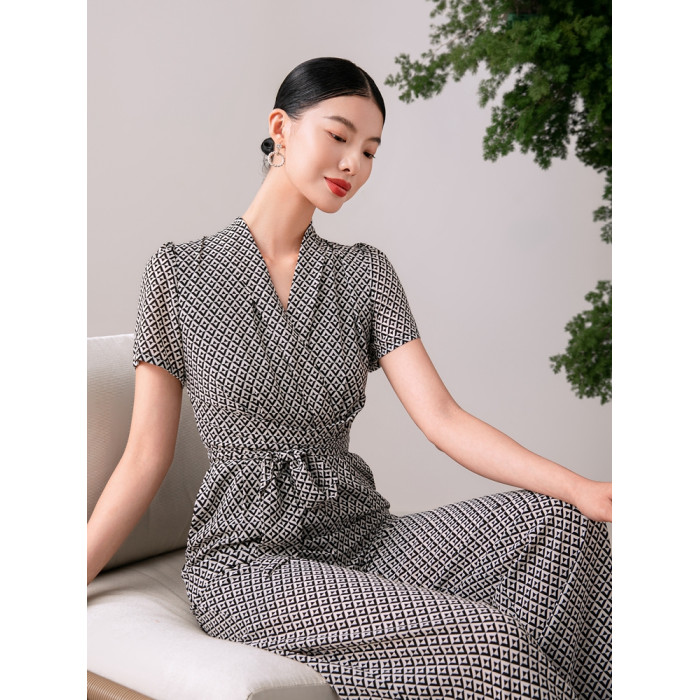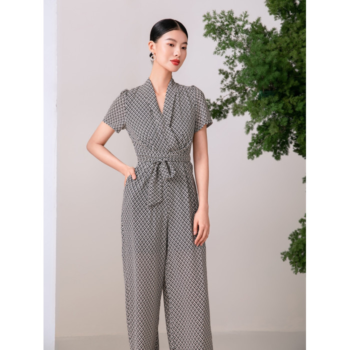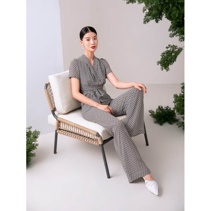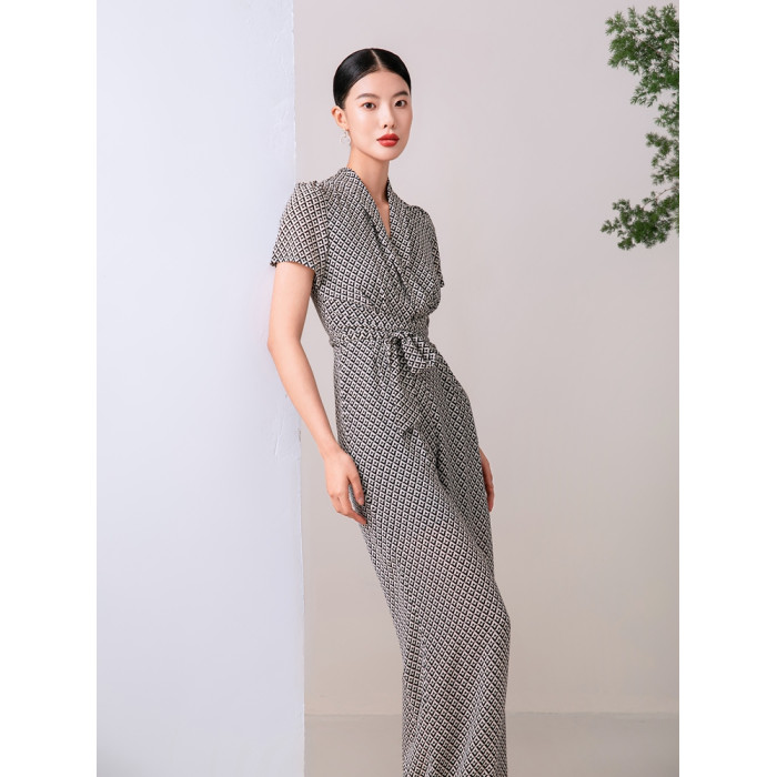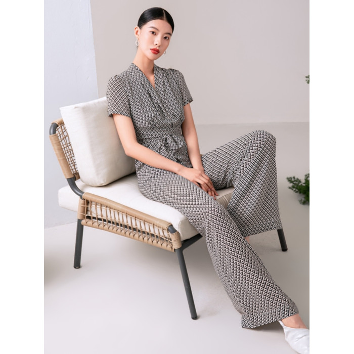 2024夏季新款高級感時尚修身短袖濶腿褲連體衣連體褲直筒褲