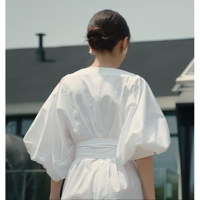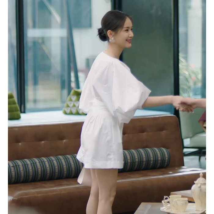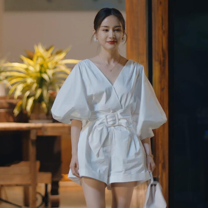 甜小姐與冷先生孟好恬甜王子文同款衣服V領連體衣白色連體短褲女