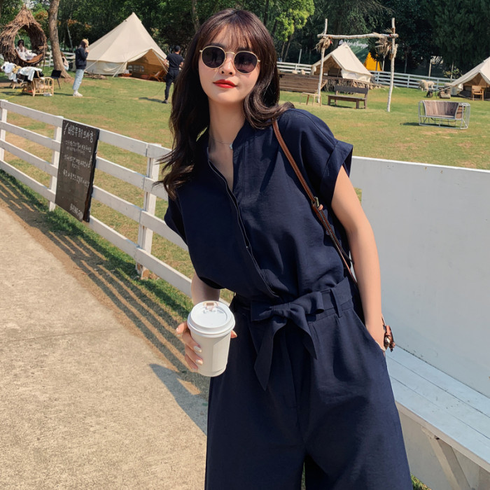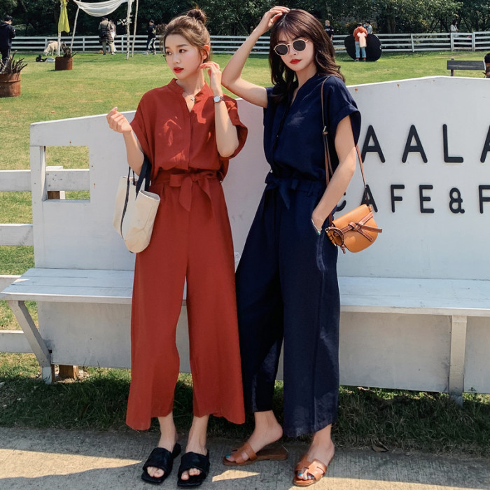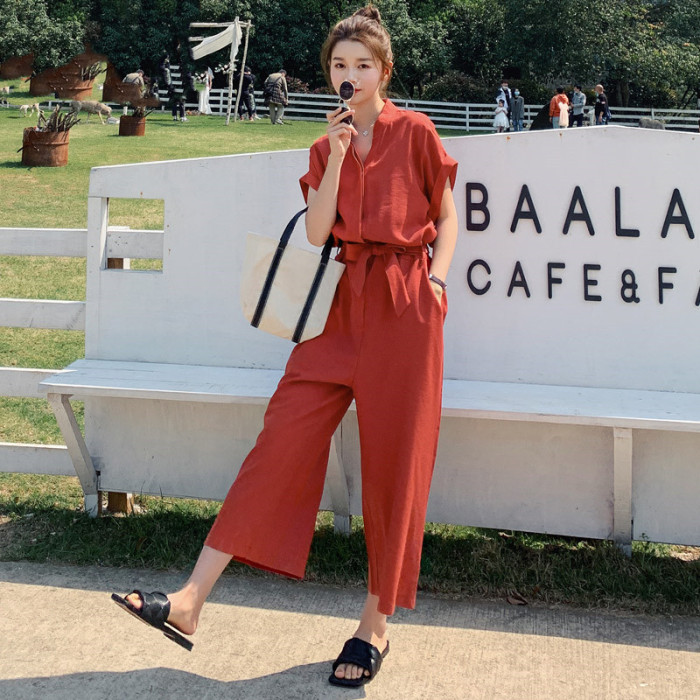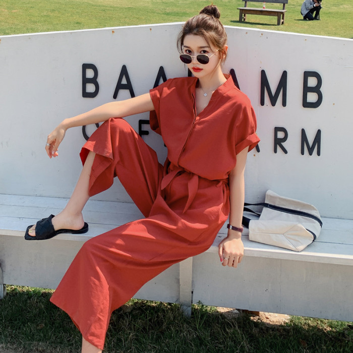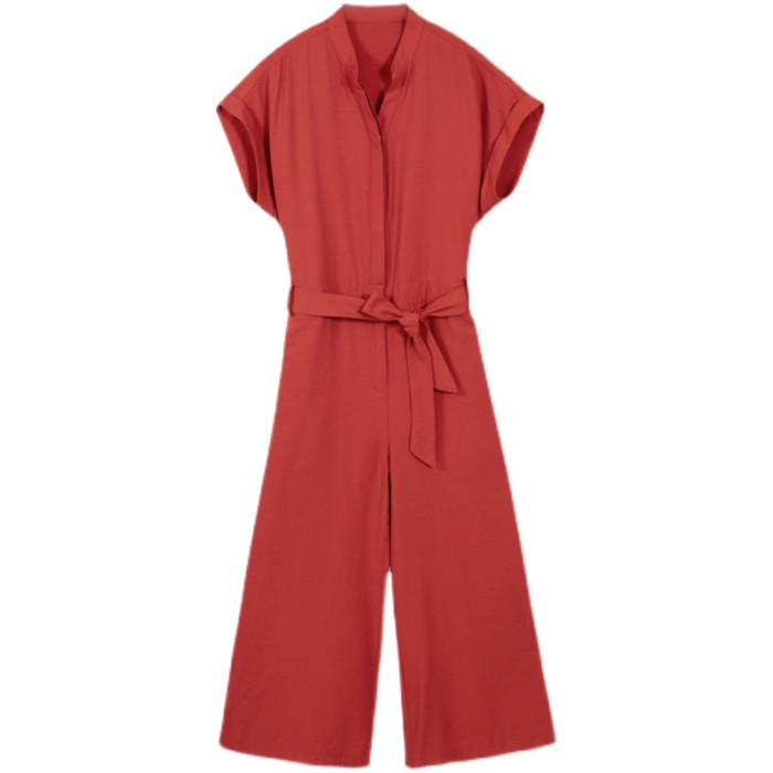 VSETAMELLE紅色連體褲女夏新款長款小個子寬松氣質高級連體衣薄款