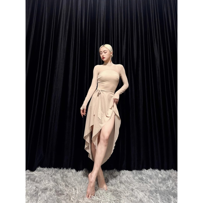 ROUR【現代舞形體】現代舞練功連體衣舞蹈演出形體服上衣肉色長袖