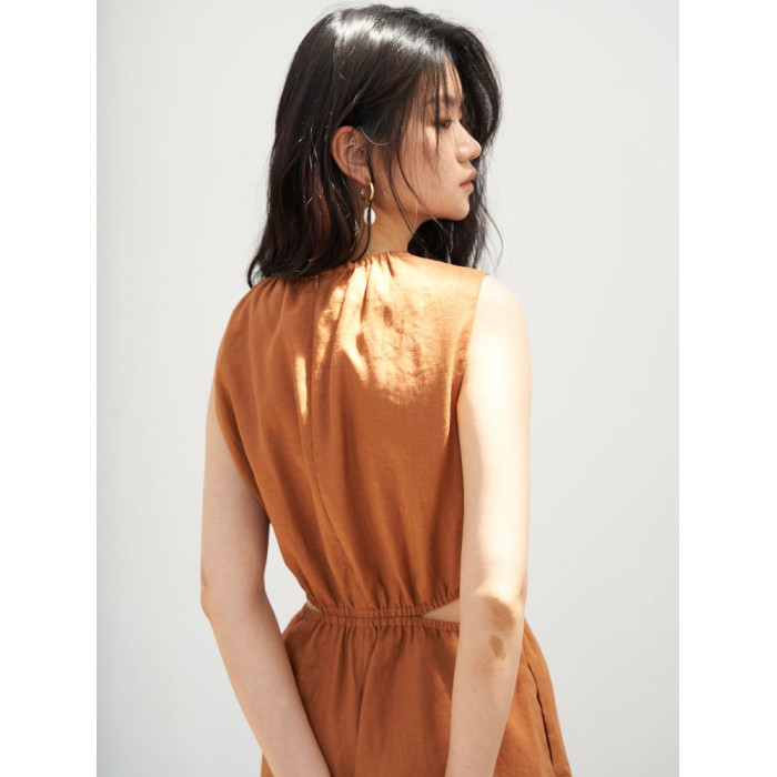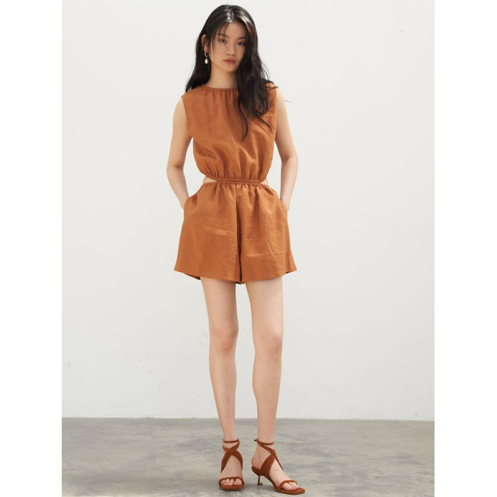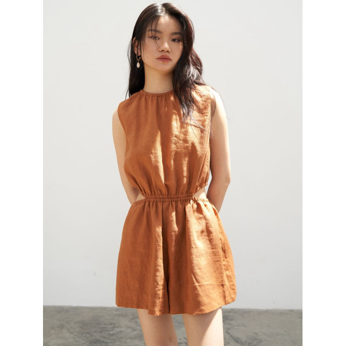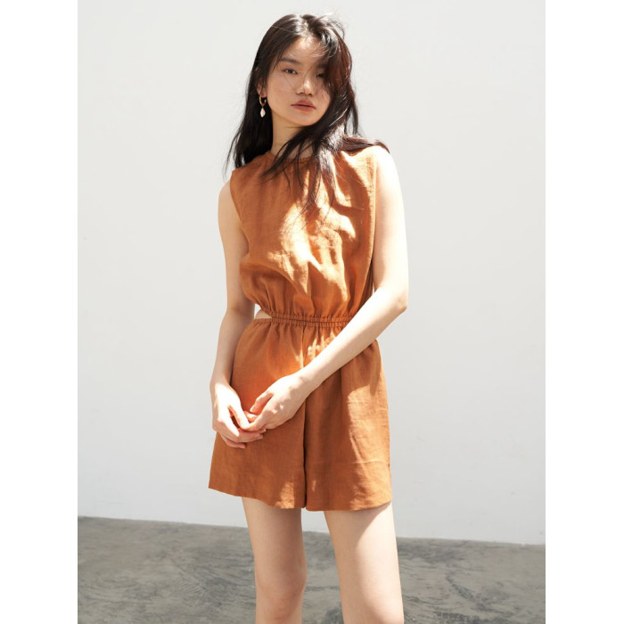 Heart Rock 亞麻背心連體褲休閒高腰短褲女高級感法式氣質連體衣