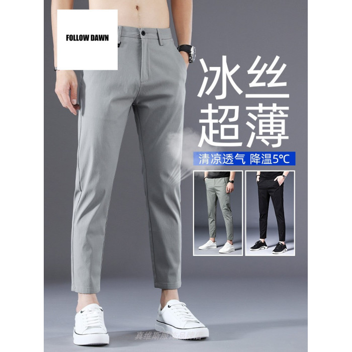 夏季薄款九分褲男修身小腳男褲潮流百搭春秋2025男士休閒褲子