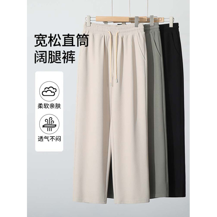 啄木鳥男士華夫格休閒褲秋季高級感垂感寬松濶腿褲男款運動衛褲Y