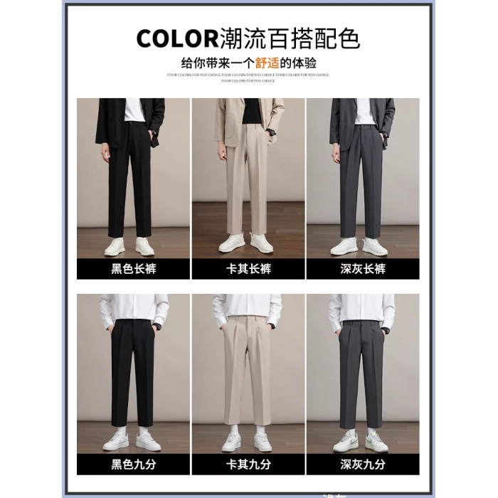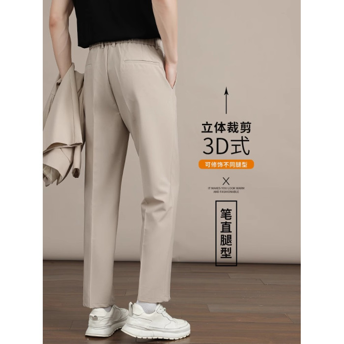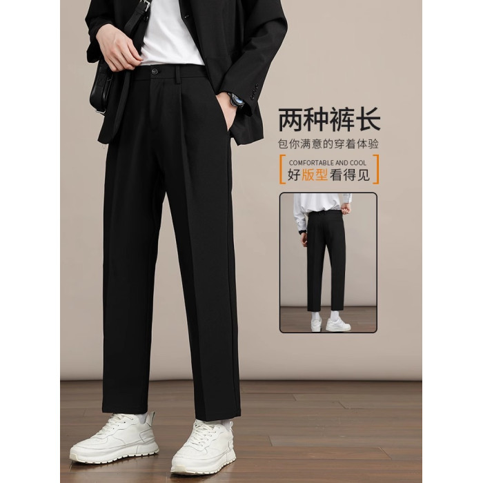 啄木鳥黑色休閒褲男士小西褲新款夏季薄款直筒修身商務西裝褲子K