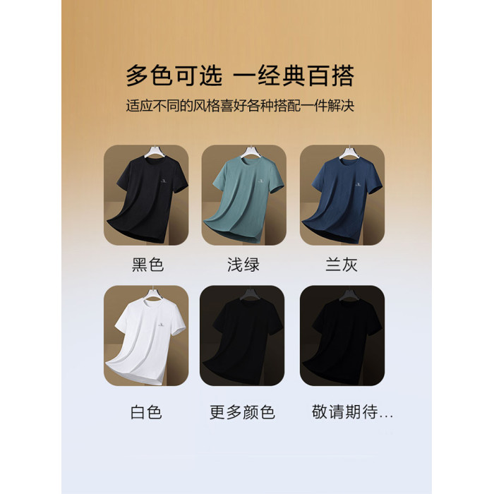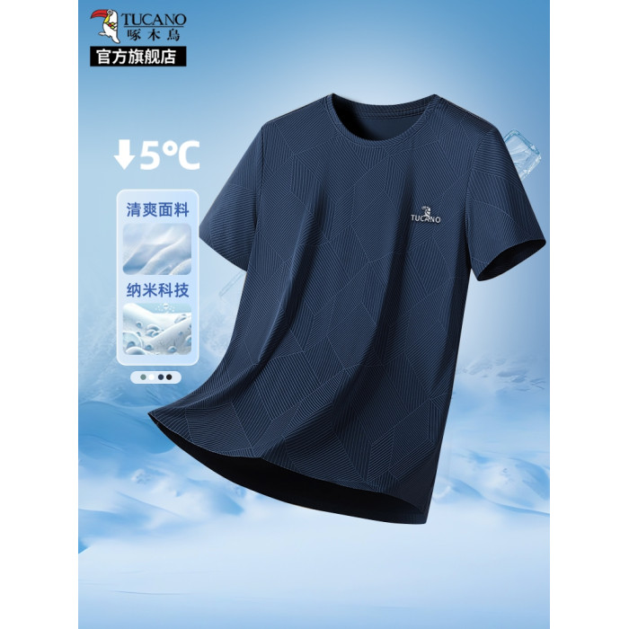 啄木鳥冰絲短袖t恤男夏季薄款2025寬松彈力速乾圓領運動休閒體恤K
