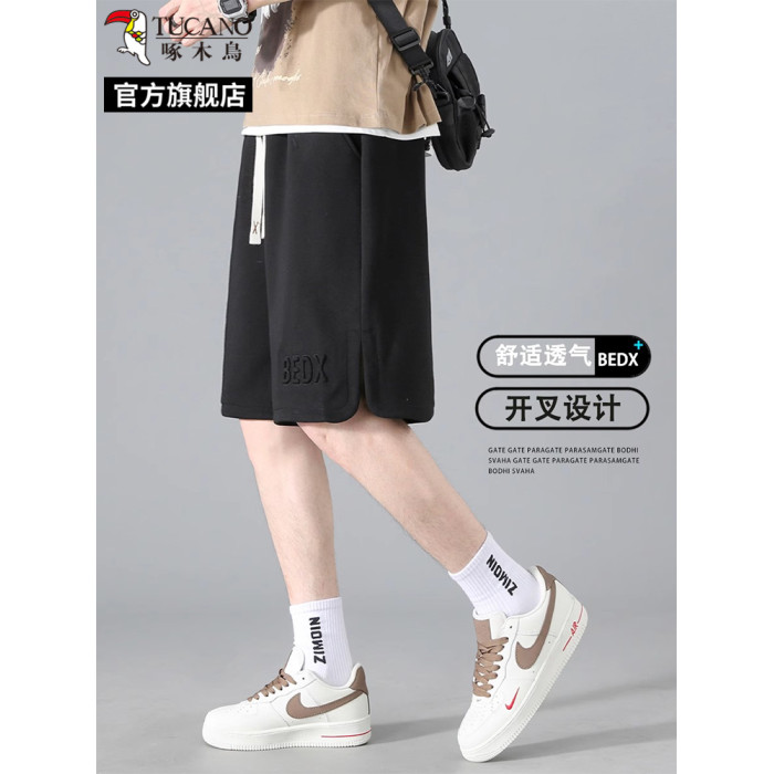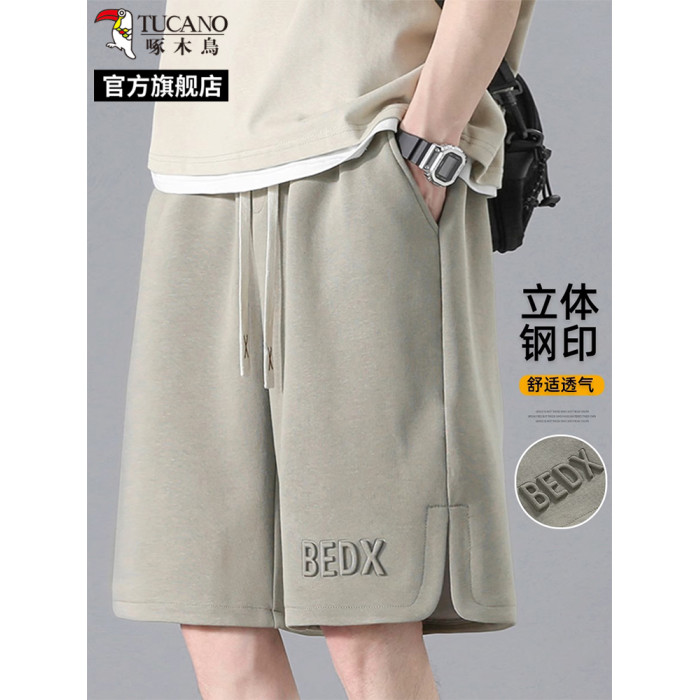 啄木鳥2025夏季新款美式高街運動短褲鋼印褲子潮牌寬松休閒五分褲