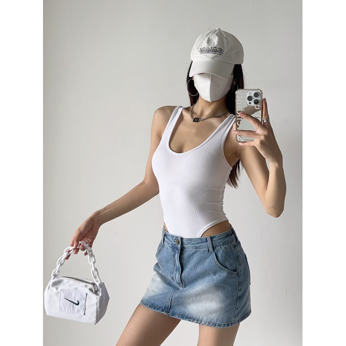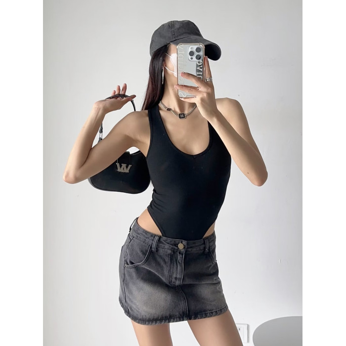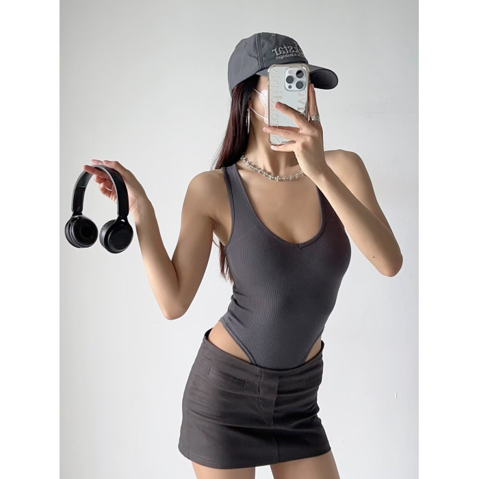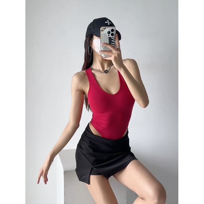 美式性感緊身工字連體吊帶背心女高叉露腰打底連體衣辣妹V領上衣