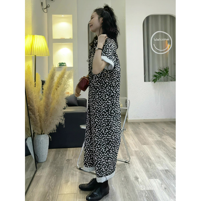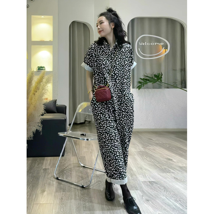 小個子鹽甜系夏季連體衣女薄款2025新款設計感小衆碎花濶腿連體褲