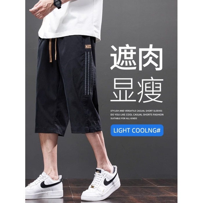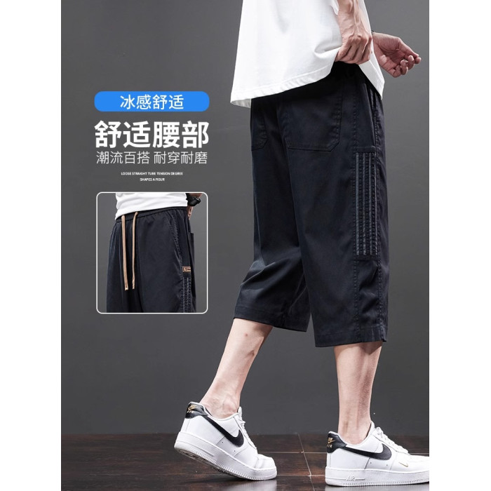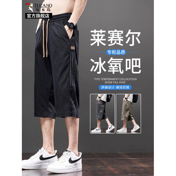 啄木鳥男士天絲短褲夏季薄款冰絲休閒運動速乾寬松外穿七分褲子K