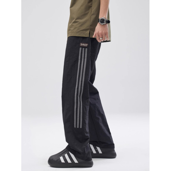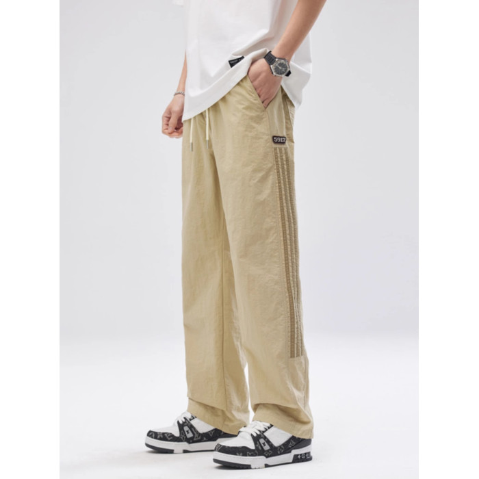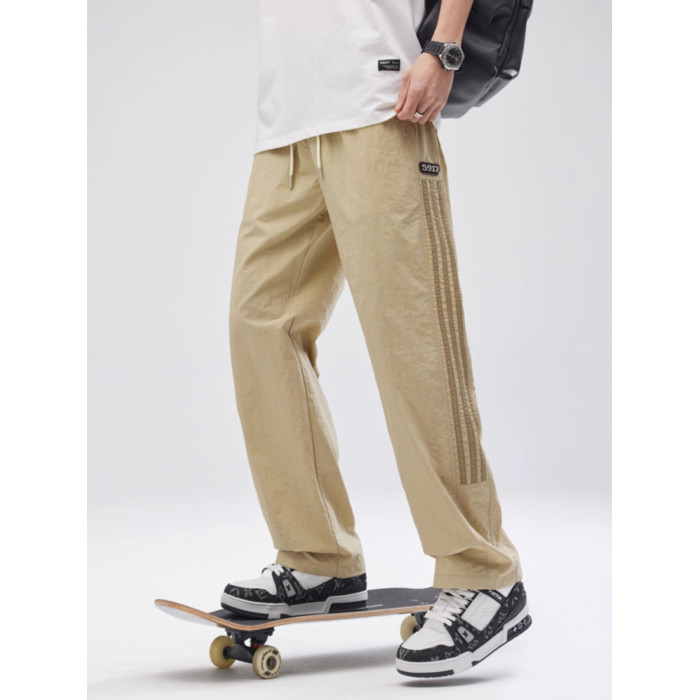 美式三條桿褲子男2025夏季薄款涼感速乾褲濶腿寬松直筒休閒長褲