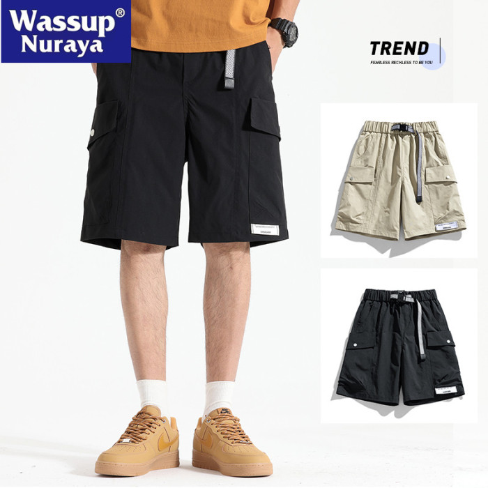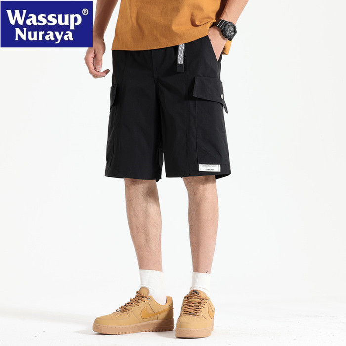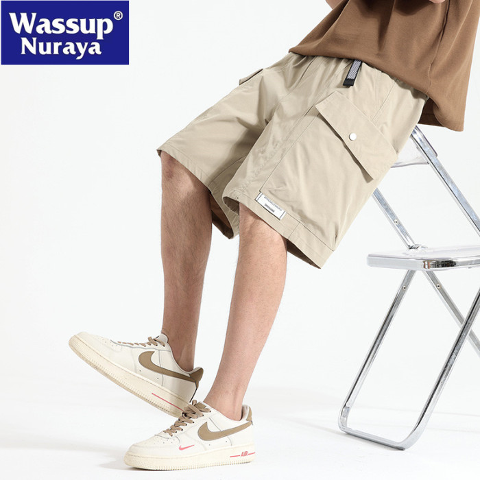 WASSUP NURAYA夏季新款休閒短褲男寬松美式工裝大口袋直筒五分褲