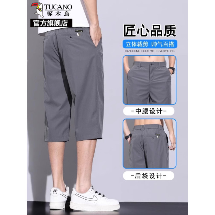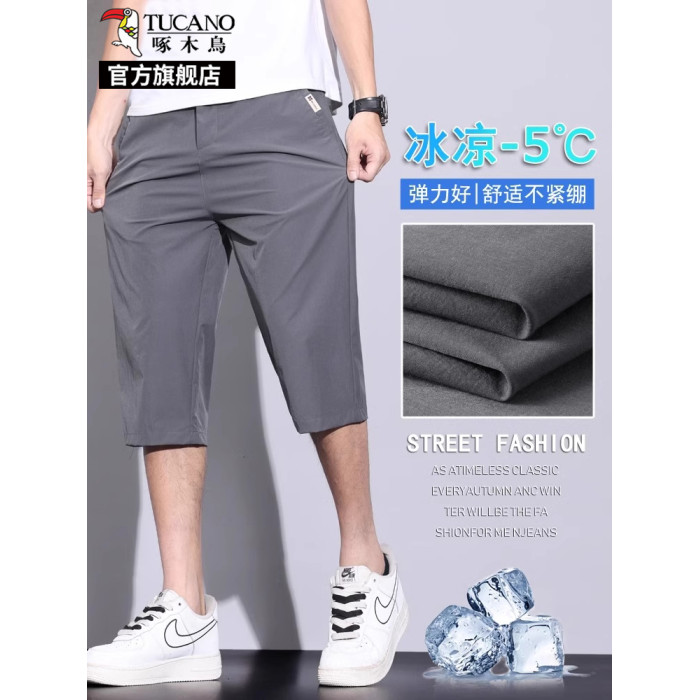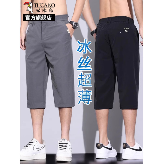 啄木鳥冰絲七分休閒褲子男士夏季薄款新款直筒商務西褲夏天短褲K