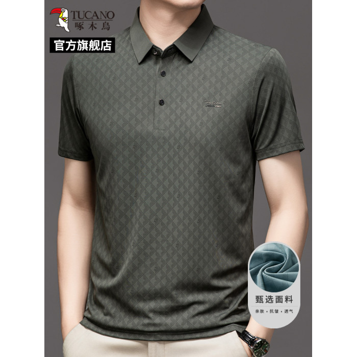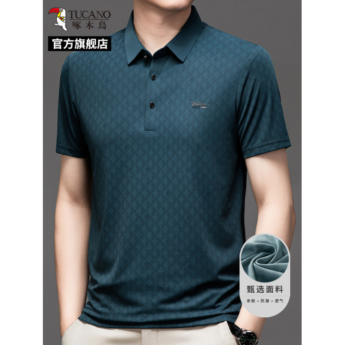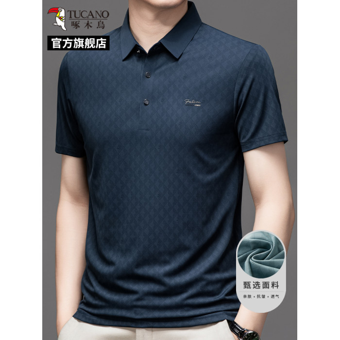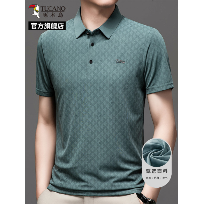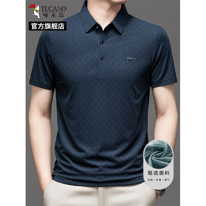 啄木鳥2025新款冰絲polo衫男士短袖夏季翻領爸爸半袖t恤休閒襯衫C