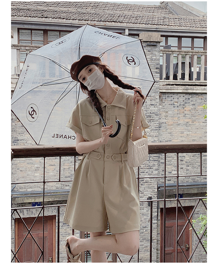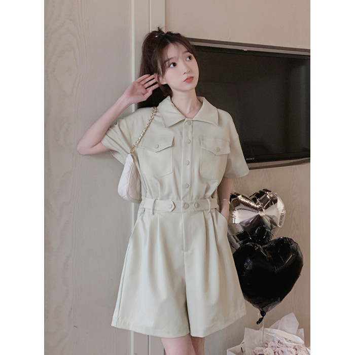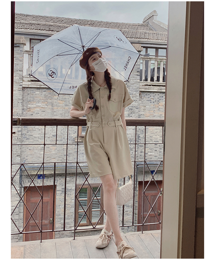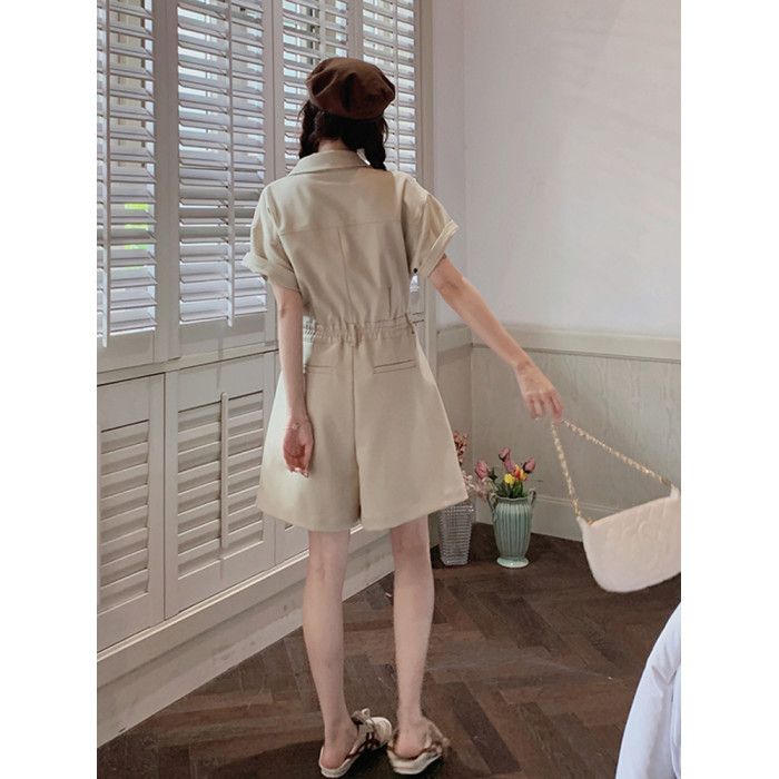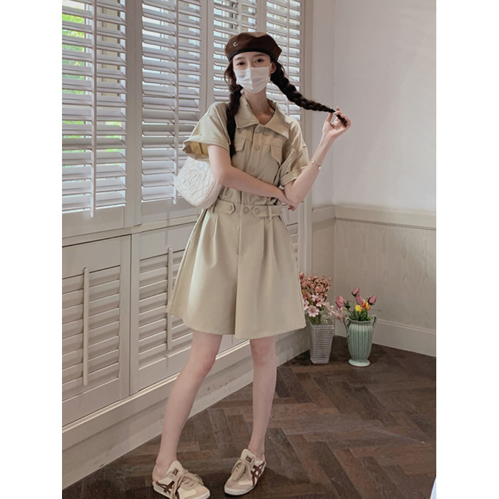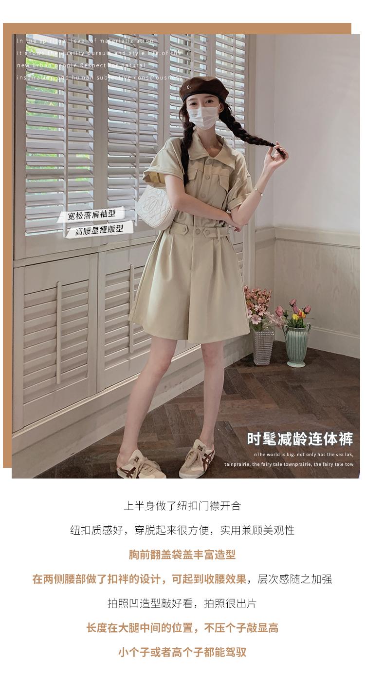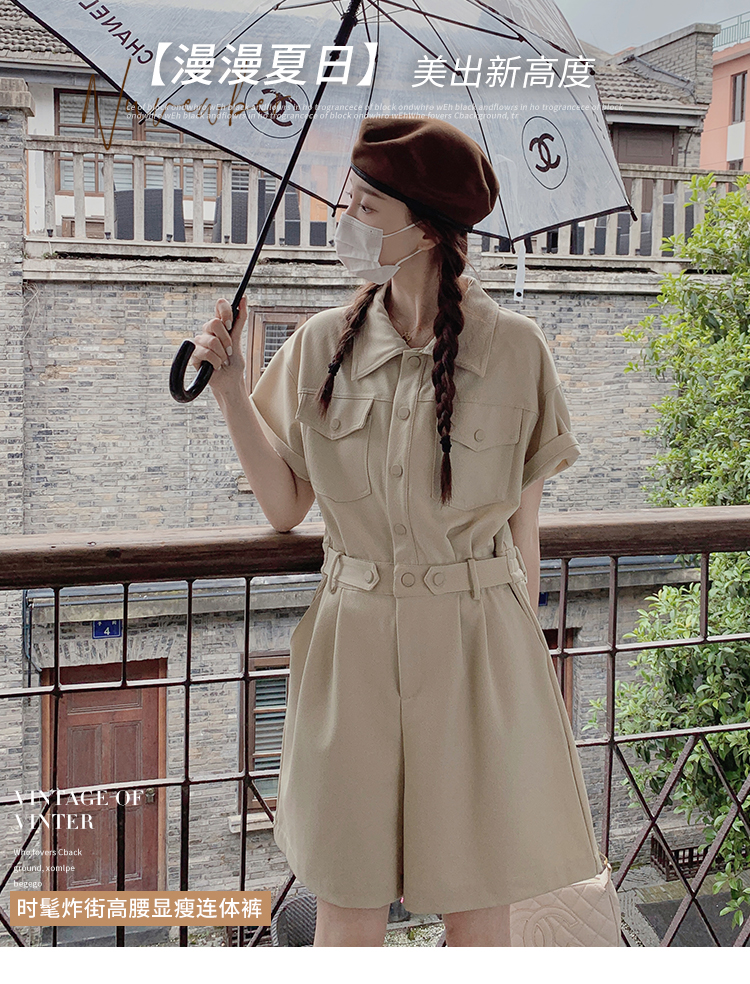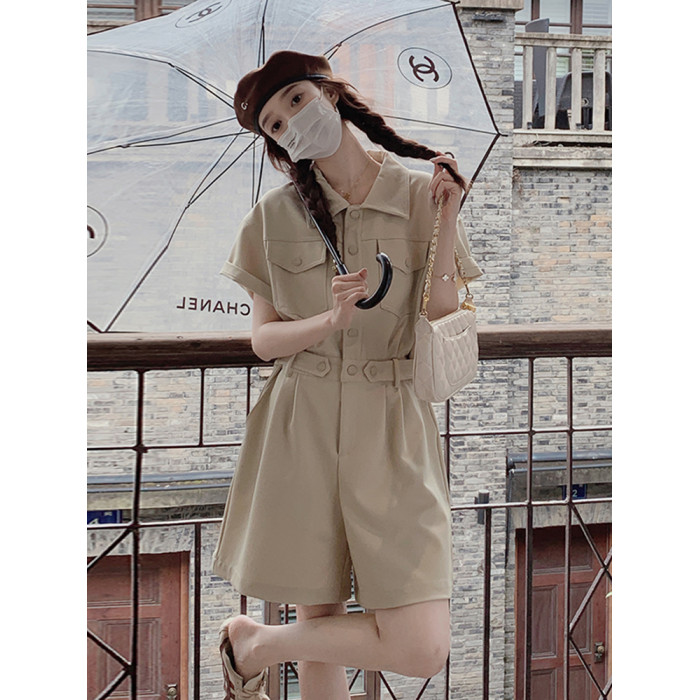 小個子工裝連體褲套裝女夏2025年新款法式氣質顯瘦濶腿連體衣短褲
