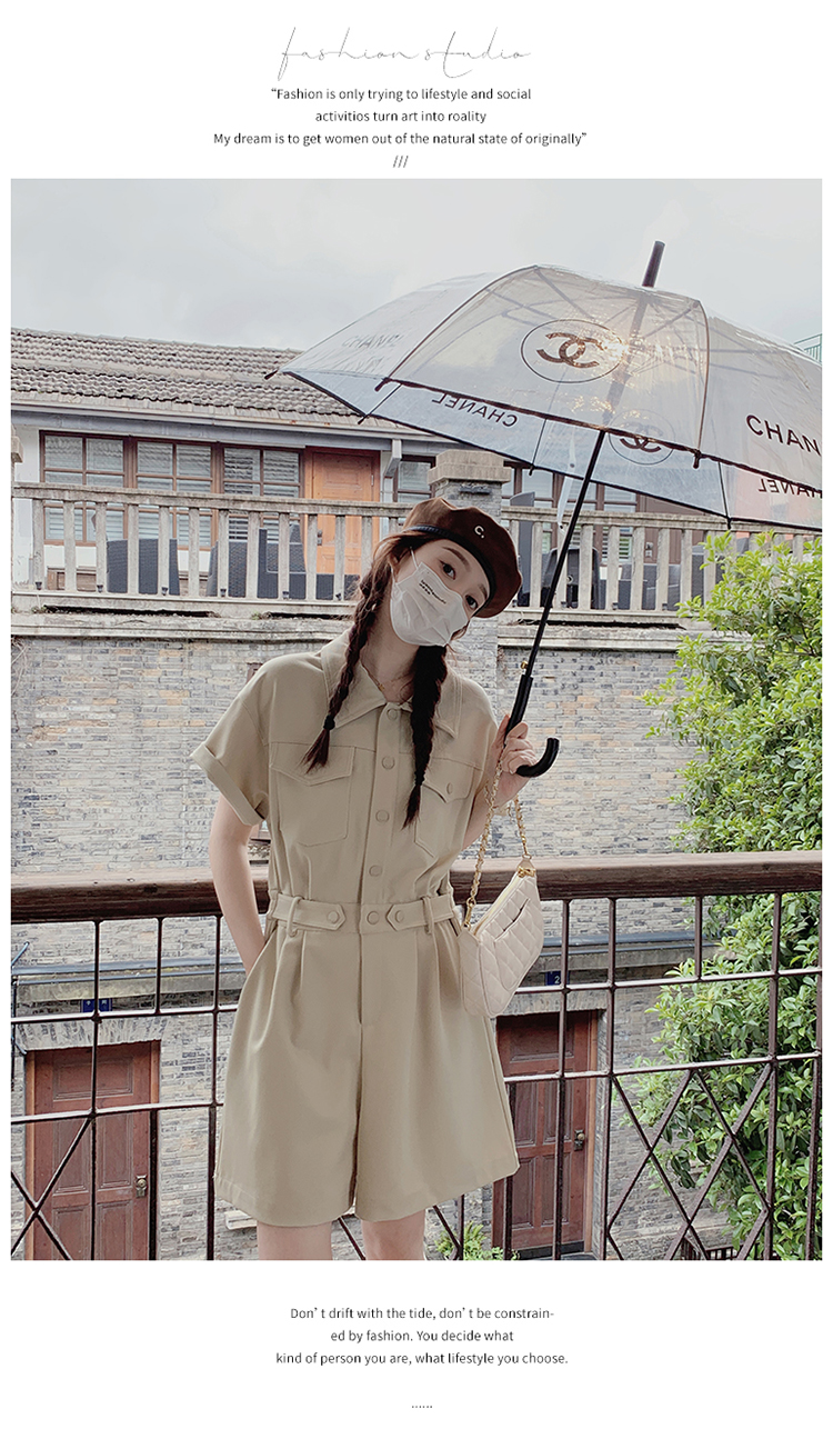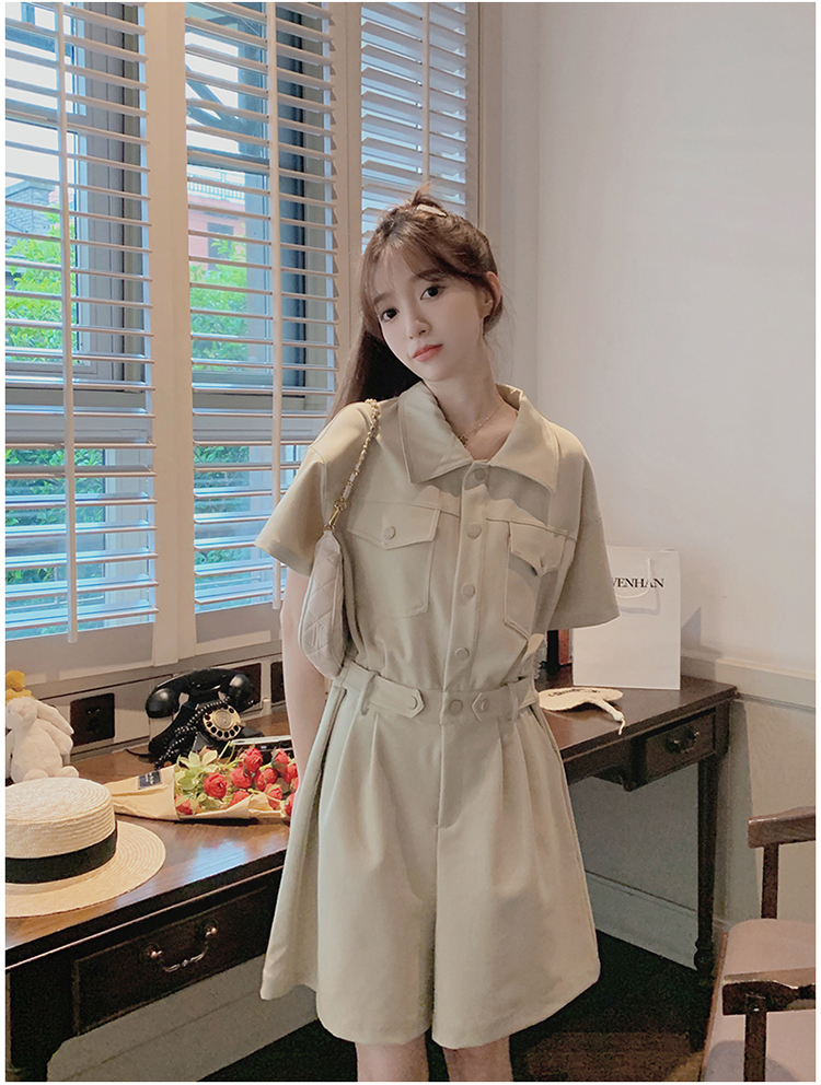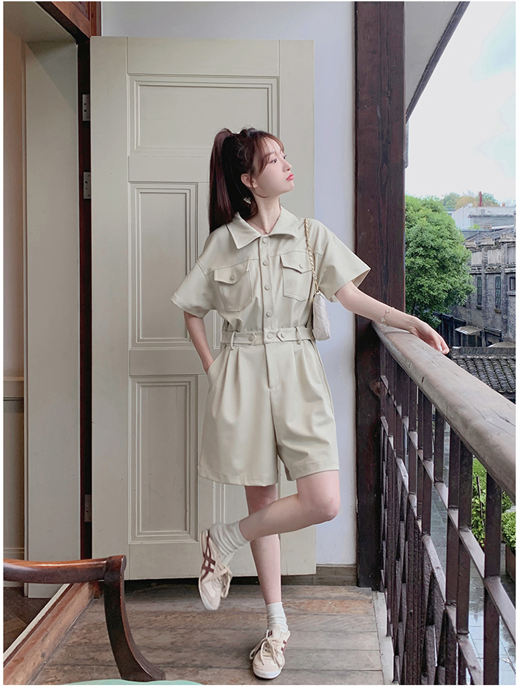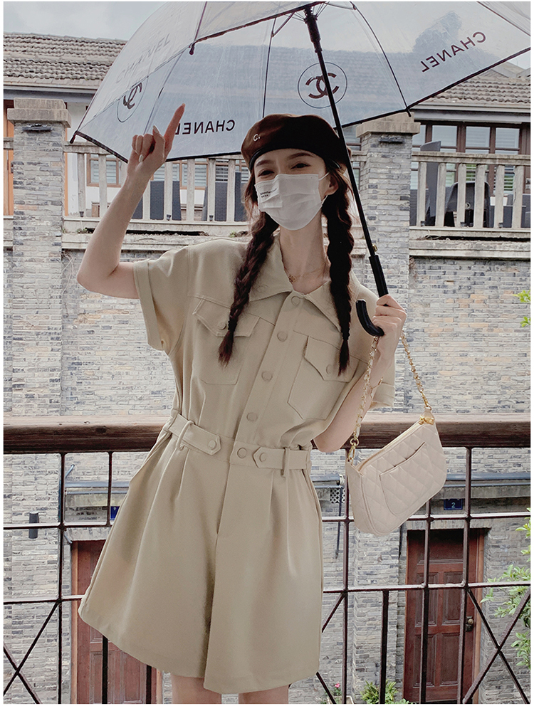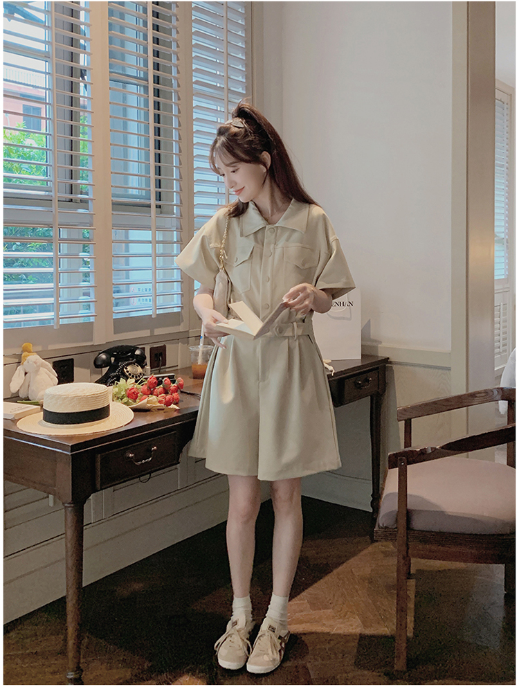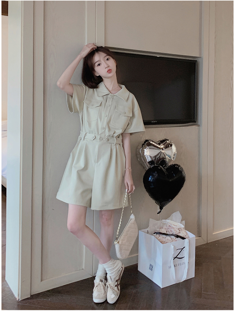 小個子工裝連體褲套裝女夏2025年新款法式氣質顯瘦濶腿連體衣短褲