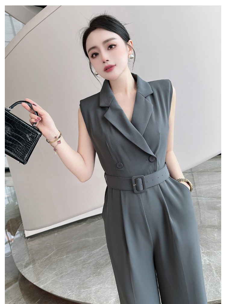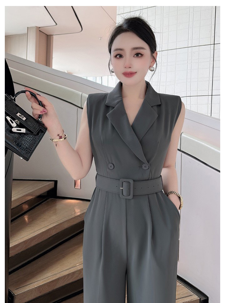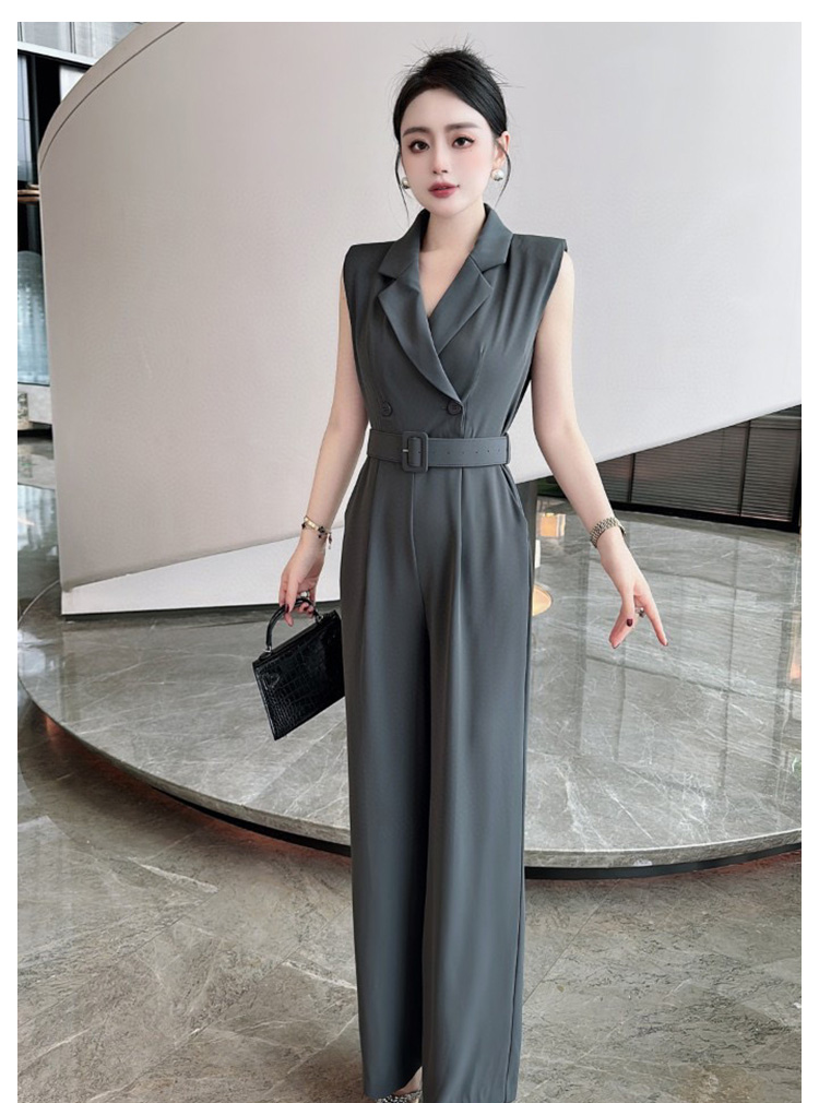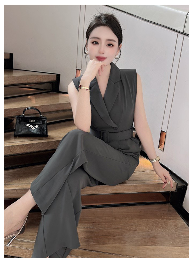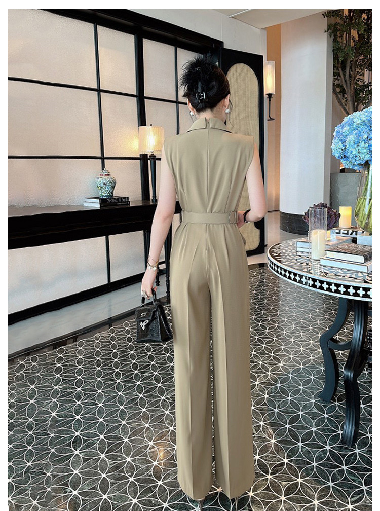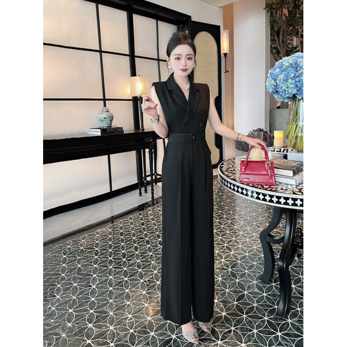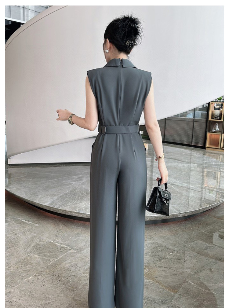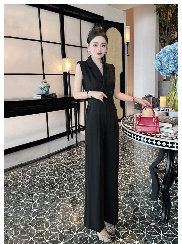 2025春夏新款減齡時尚收腰無袖西裝連體衣女濶腿連體褲職業套裝