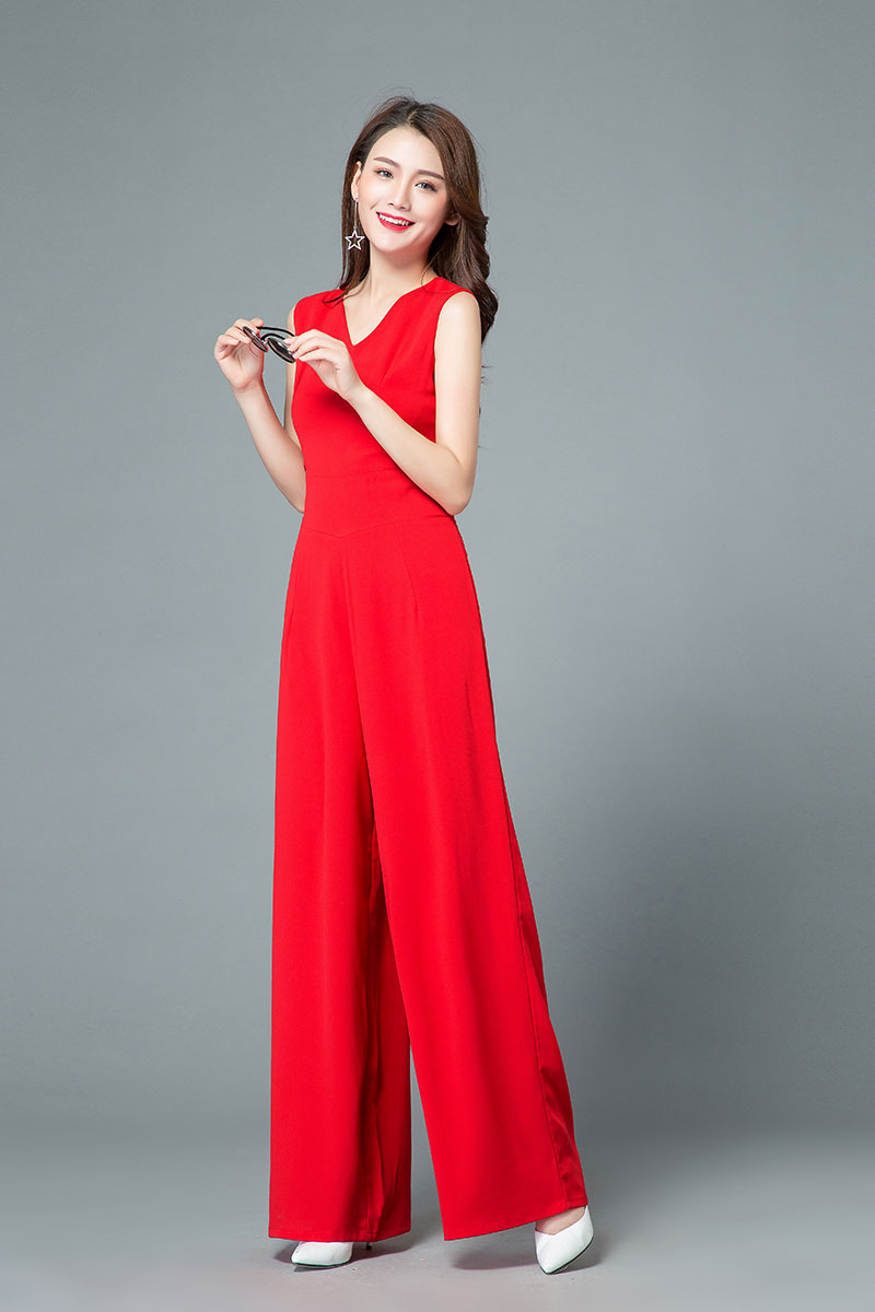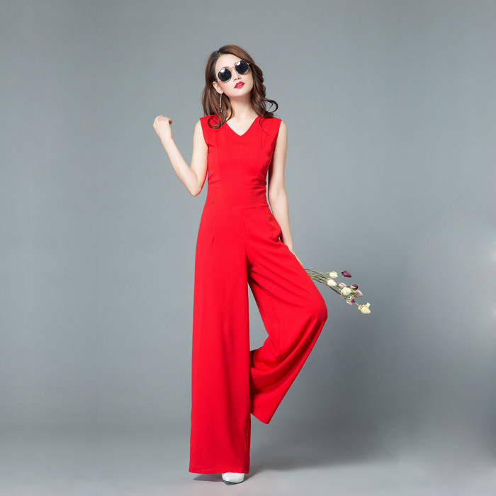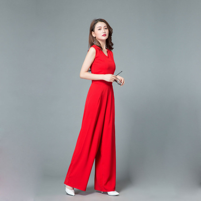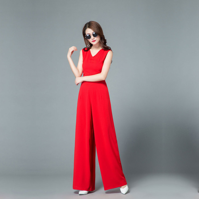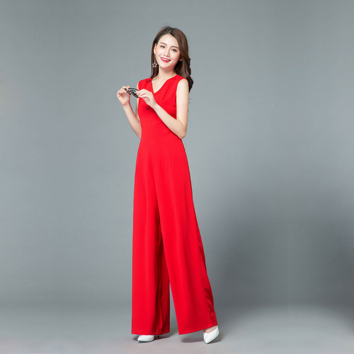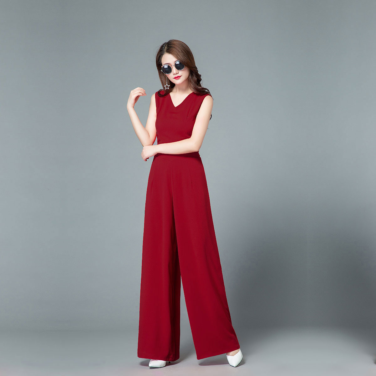 新款原創薄款長褲濶腿褲女夏裝雪紡修身高腰連體衣套裝 洋氣 時尚