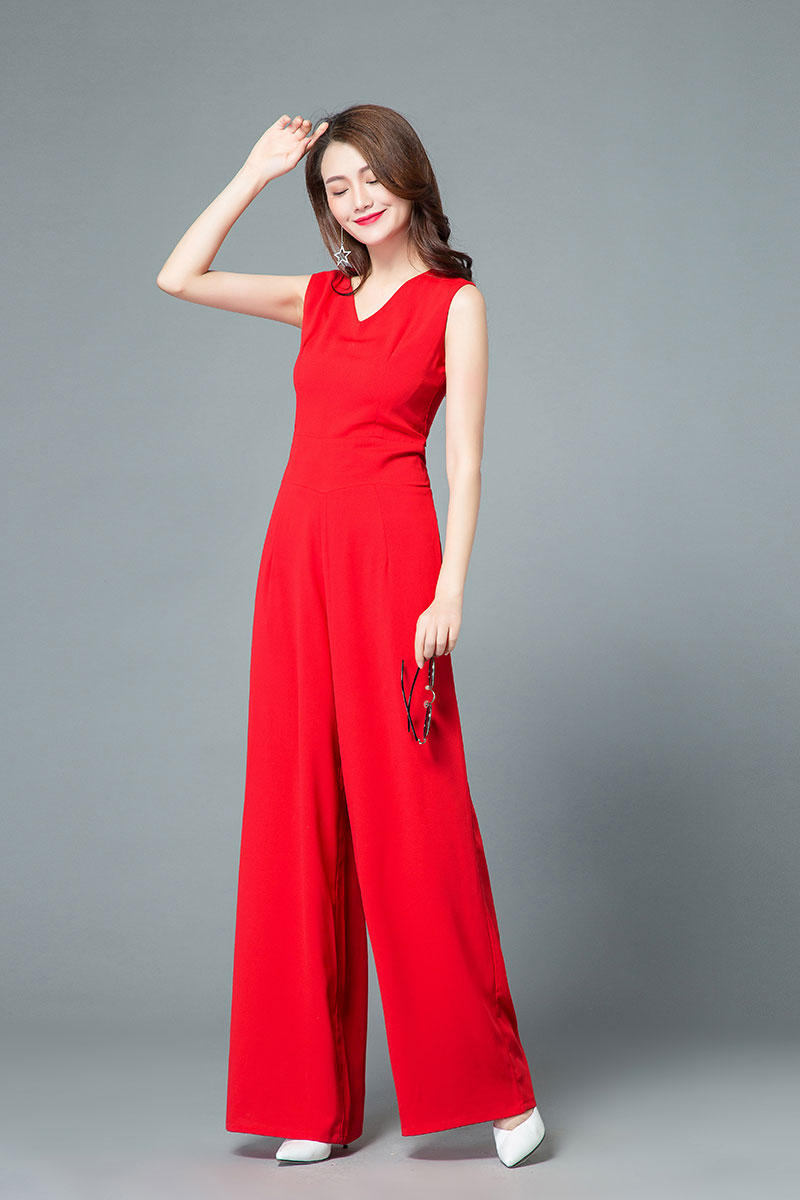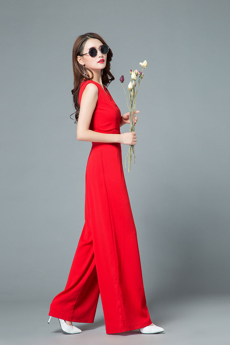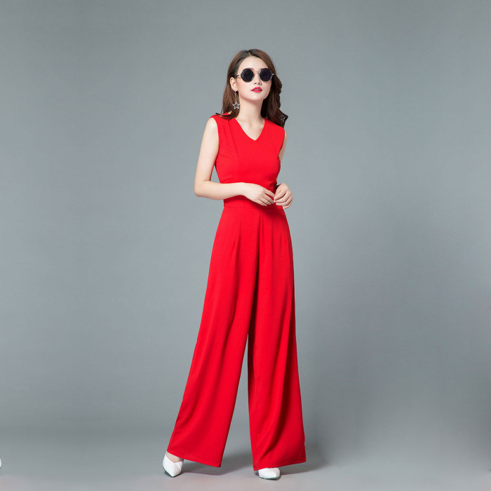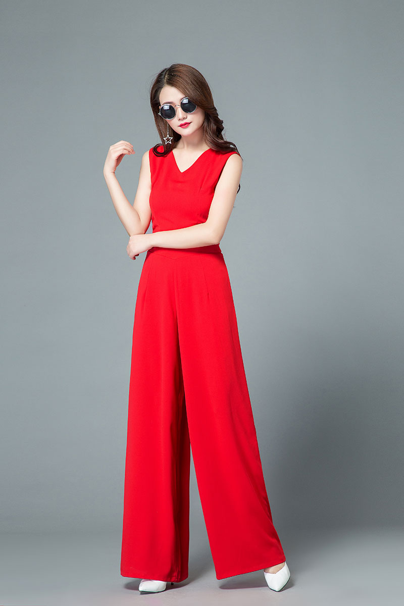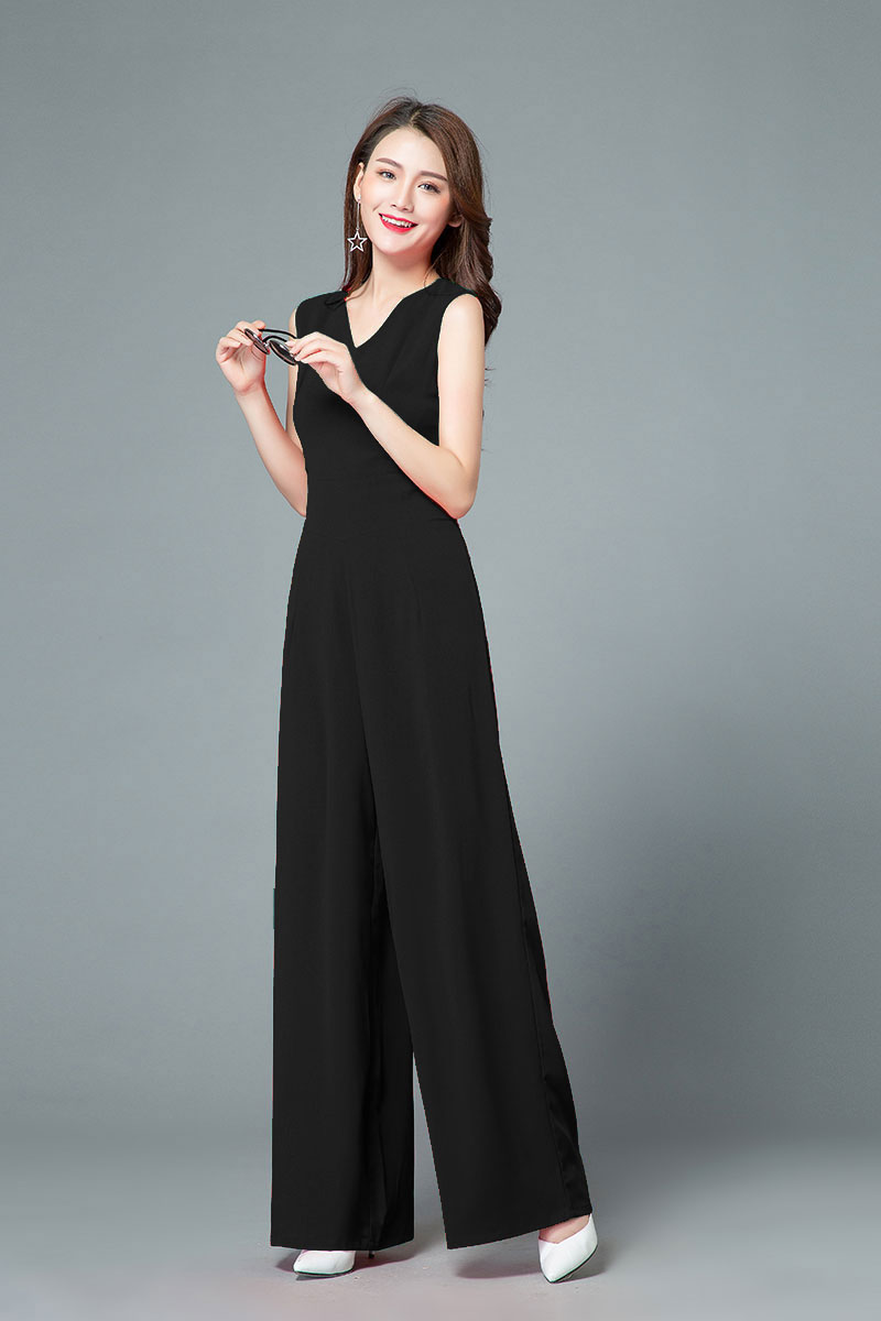 新款原創薄款長褲濶腿褲女夏裝雪紡修身高腰連體衣套裝 洋氣 時尚