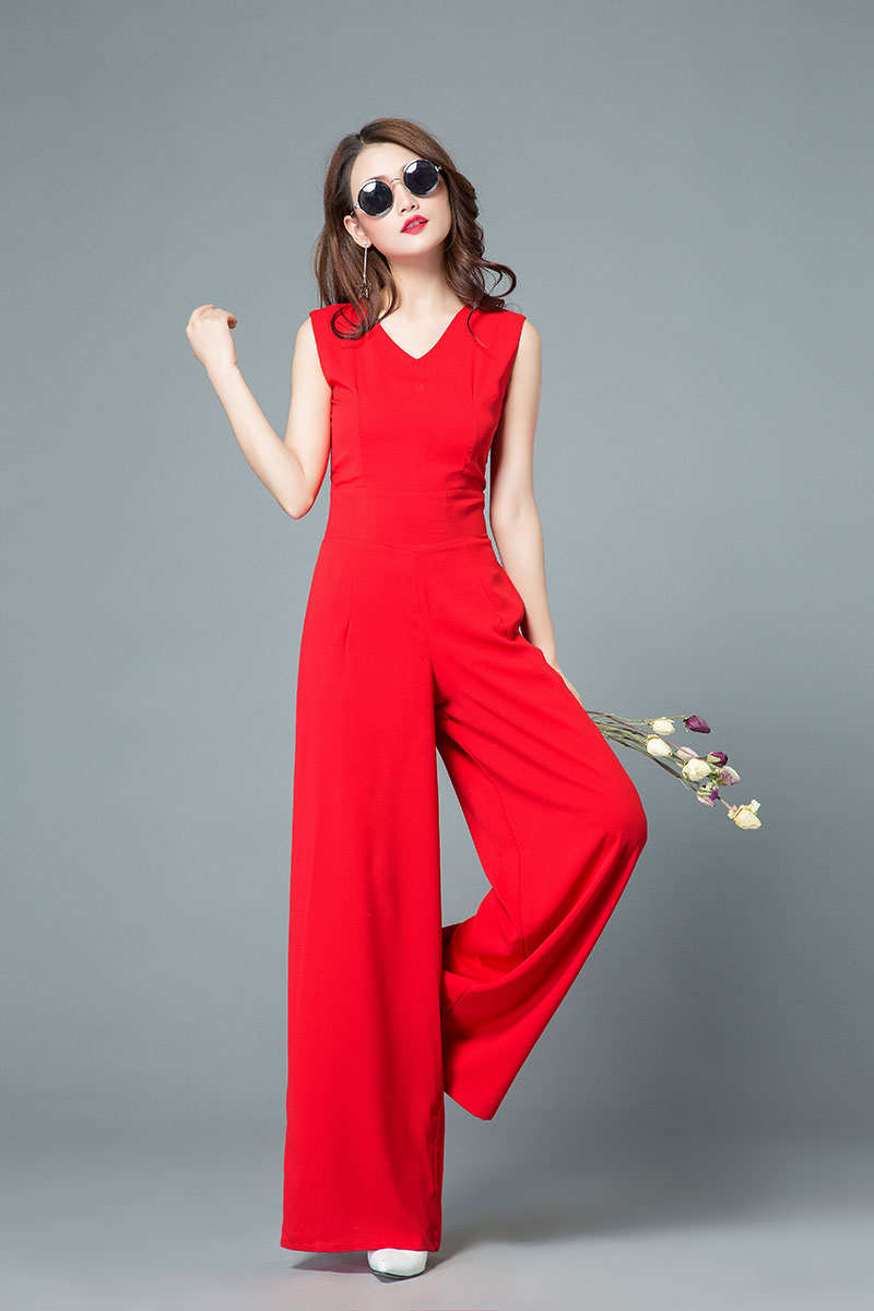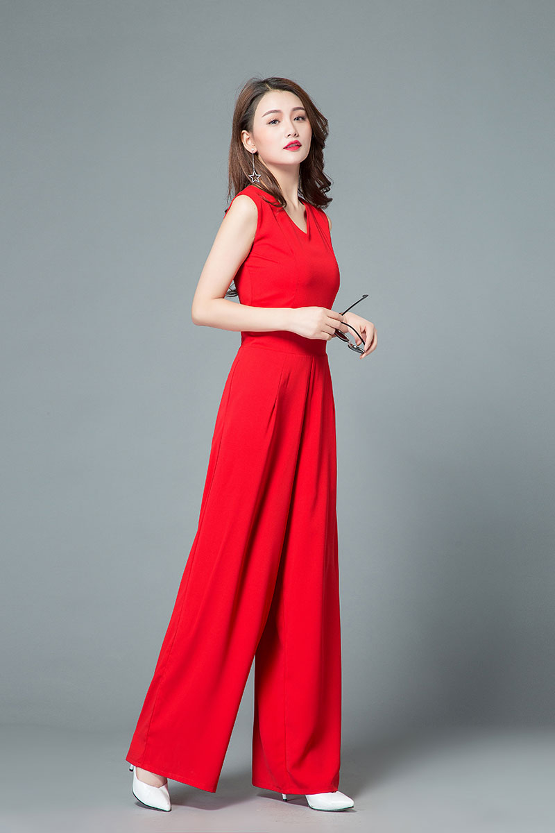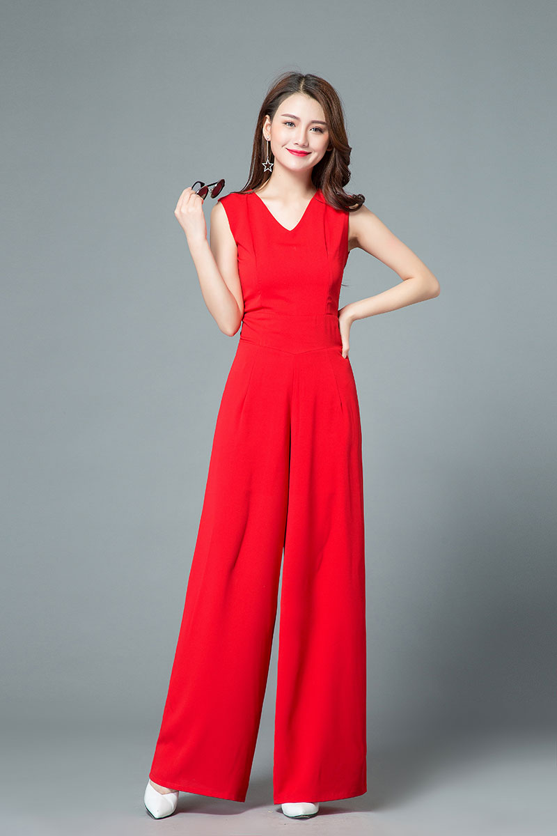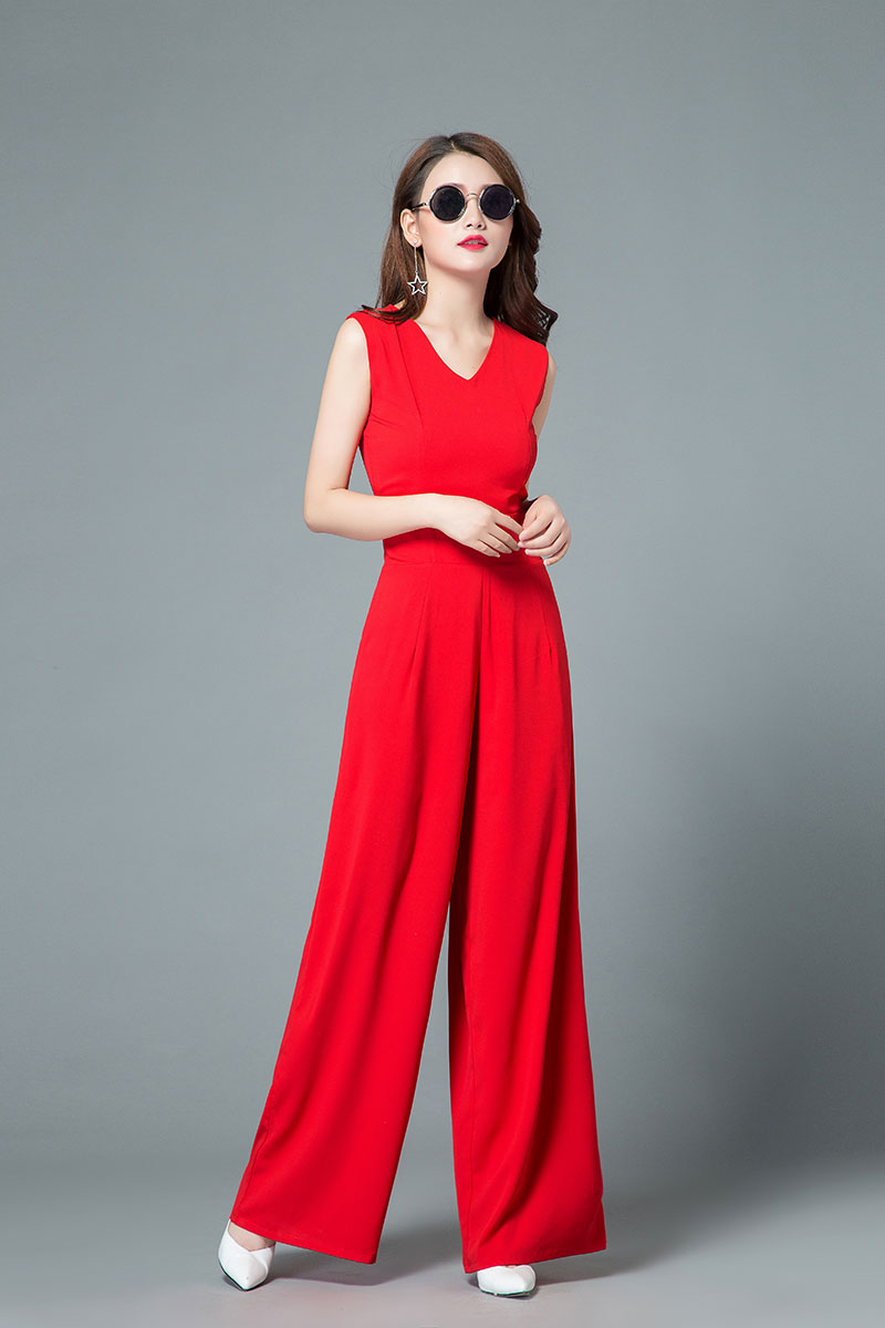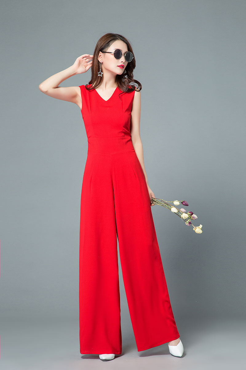 新款原創薄款長褲濶腿褲女夏裝雪紡修身高腰連體衣套裝 洋氣 時尚