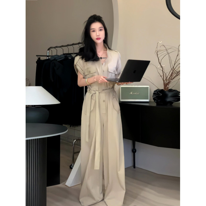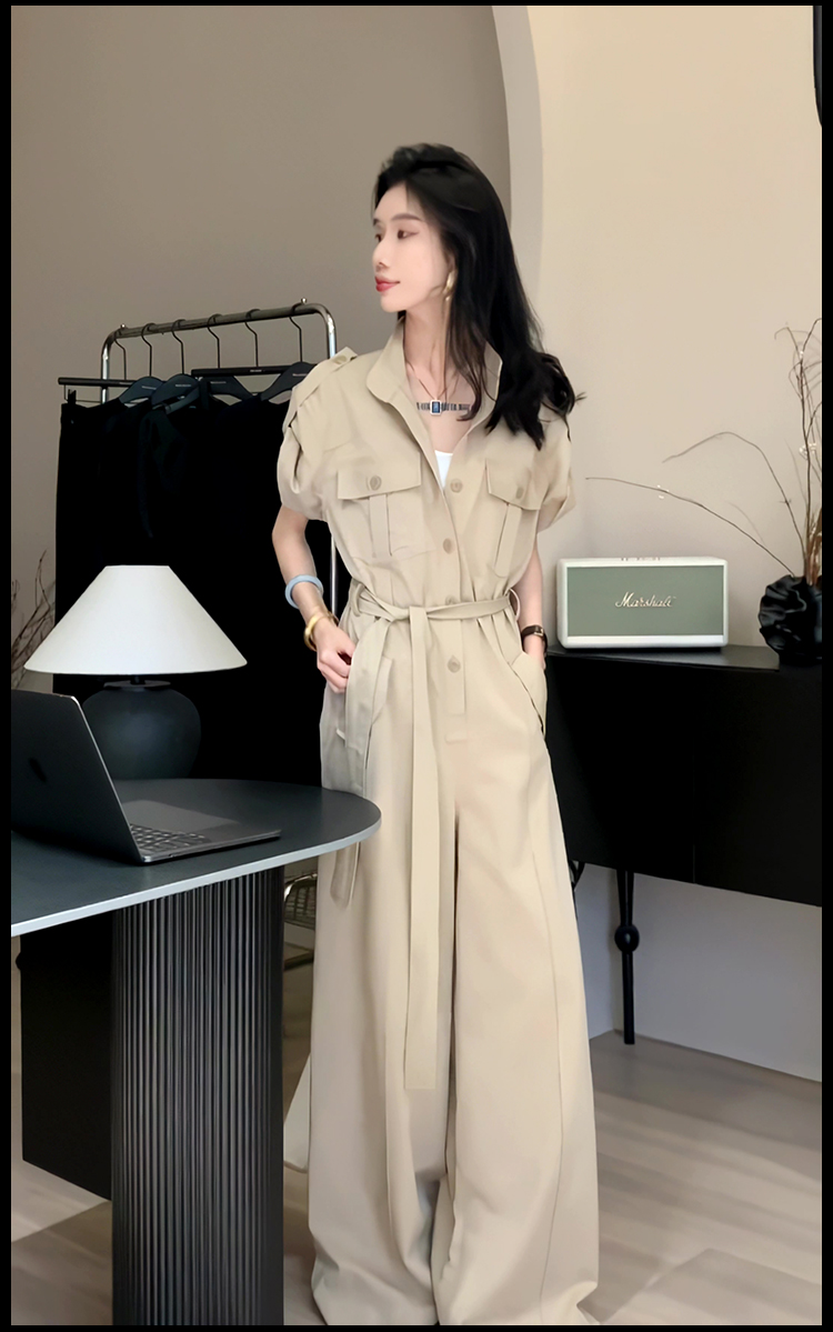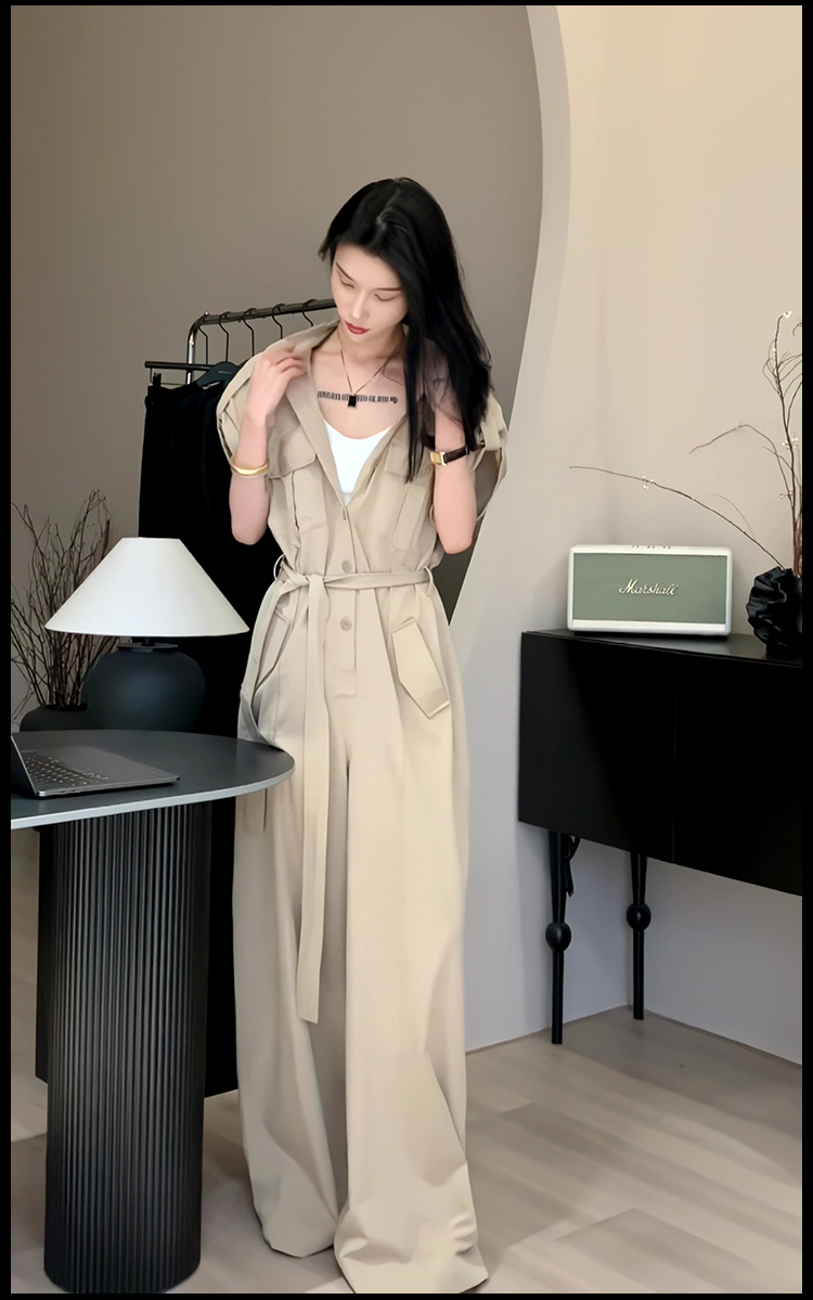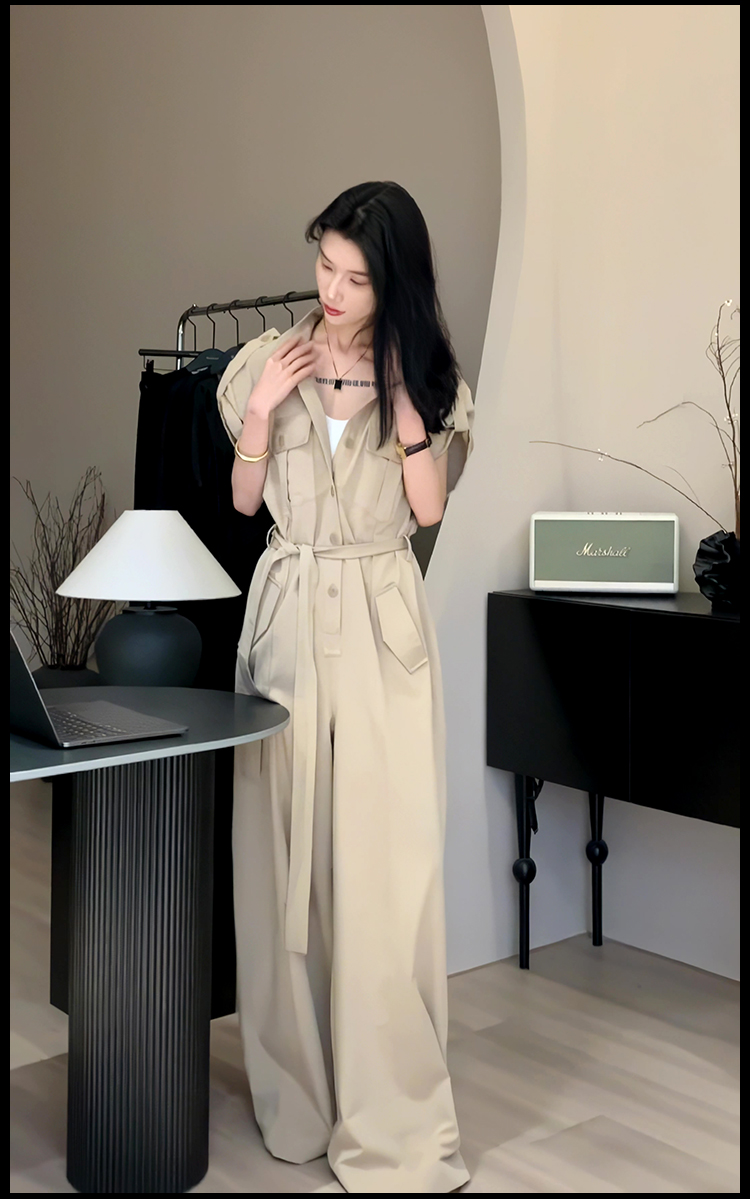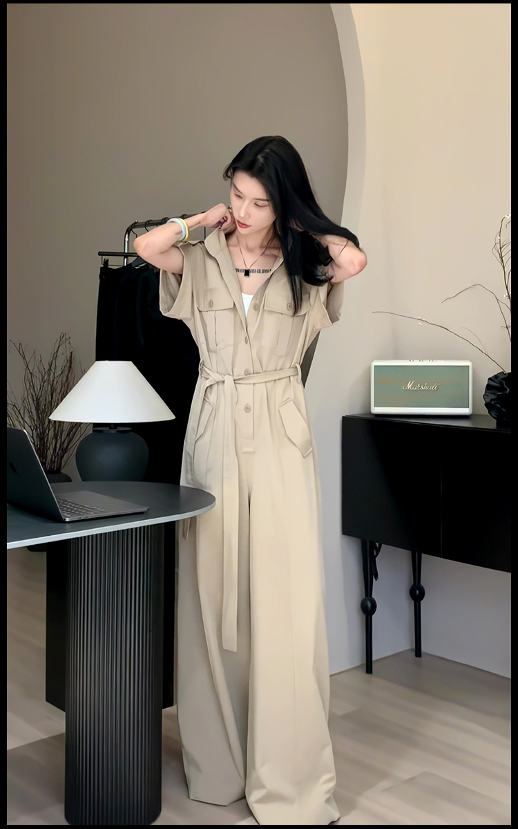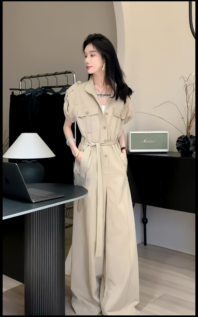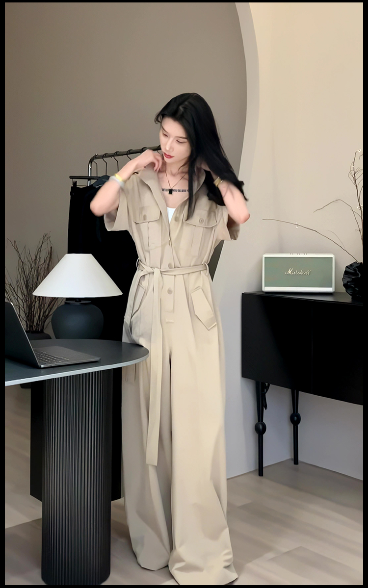工裝連體褲女2025夏季薄款時尚寬松帥氣炸街顯高顯瘦連體衣濶腿褲