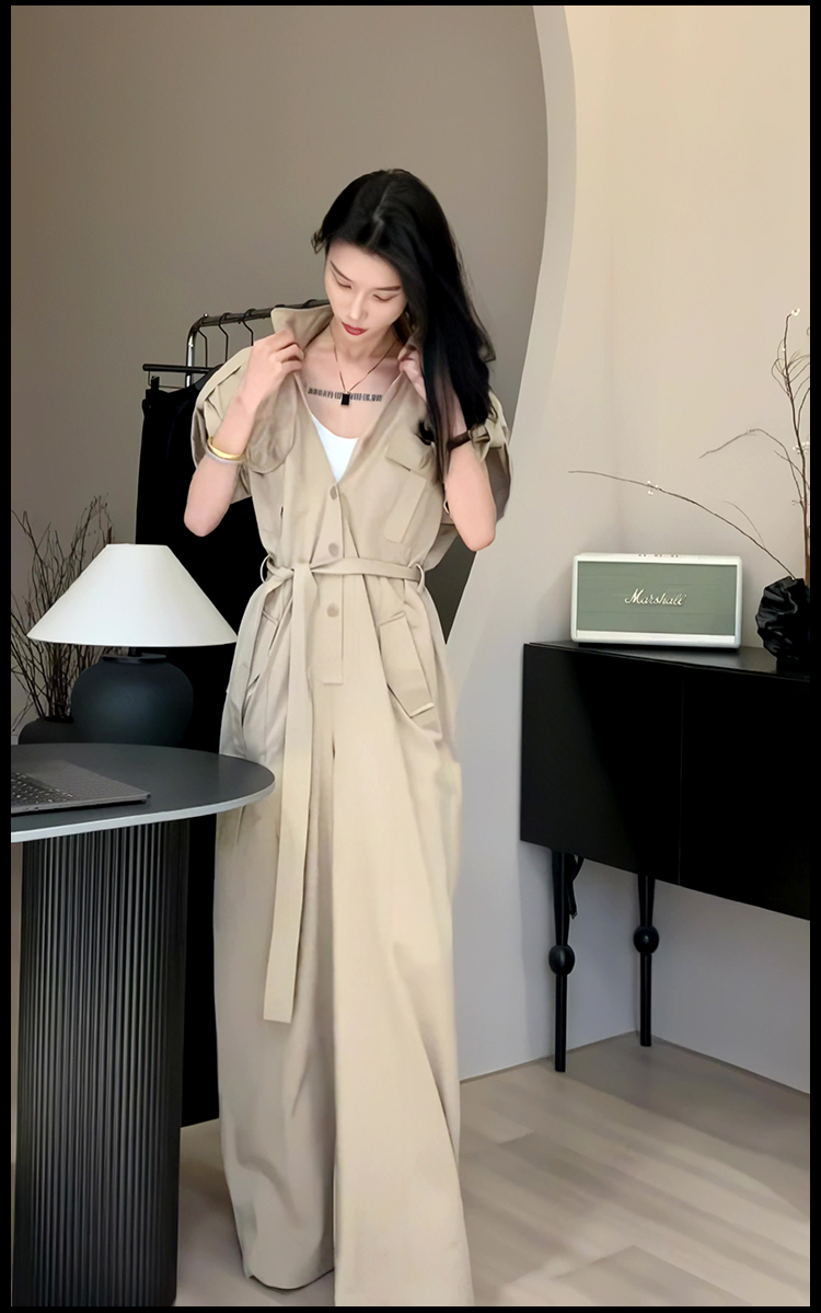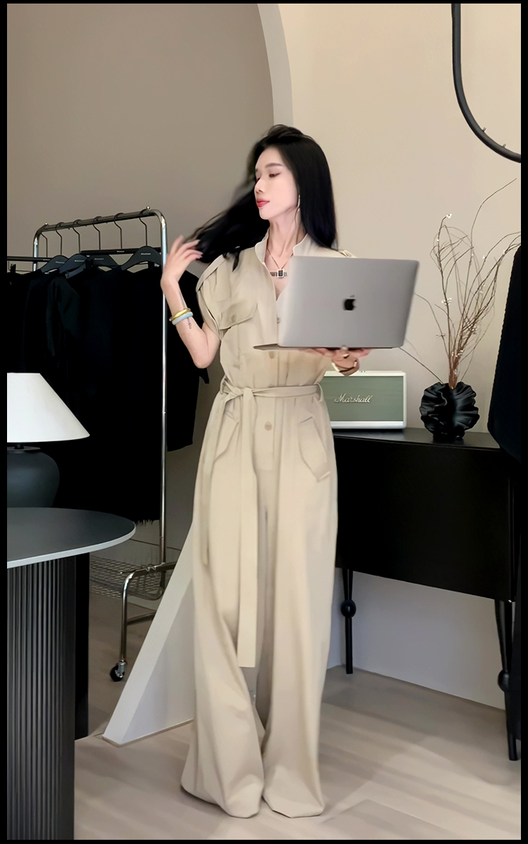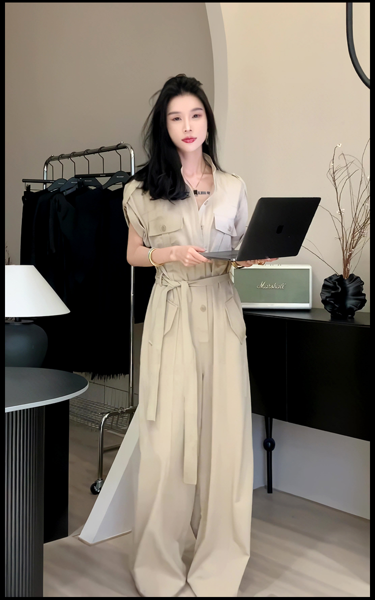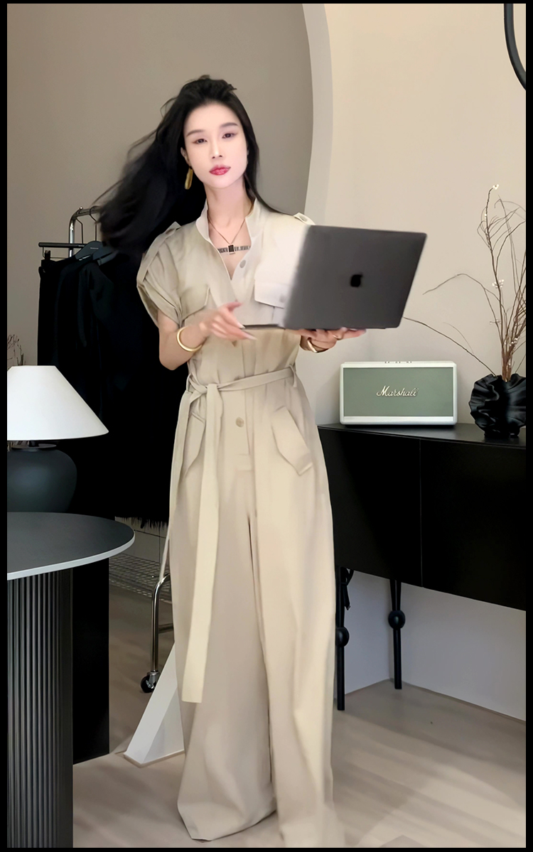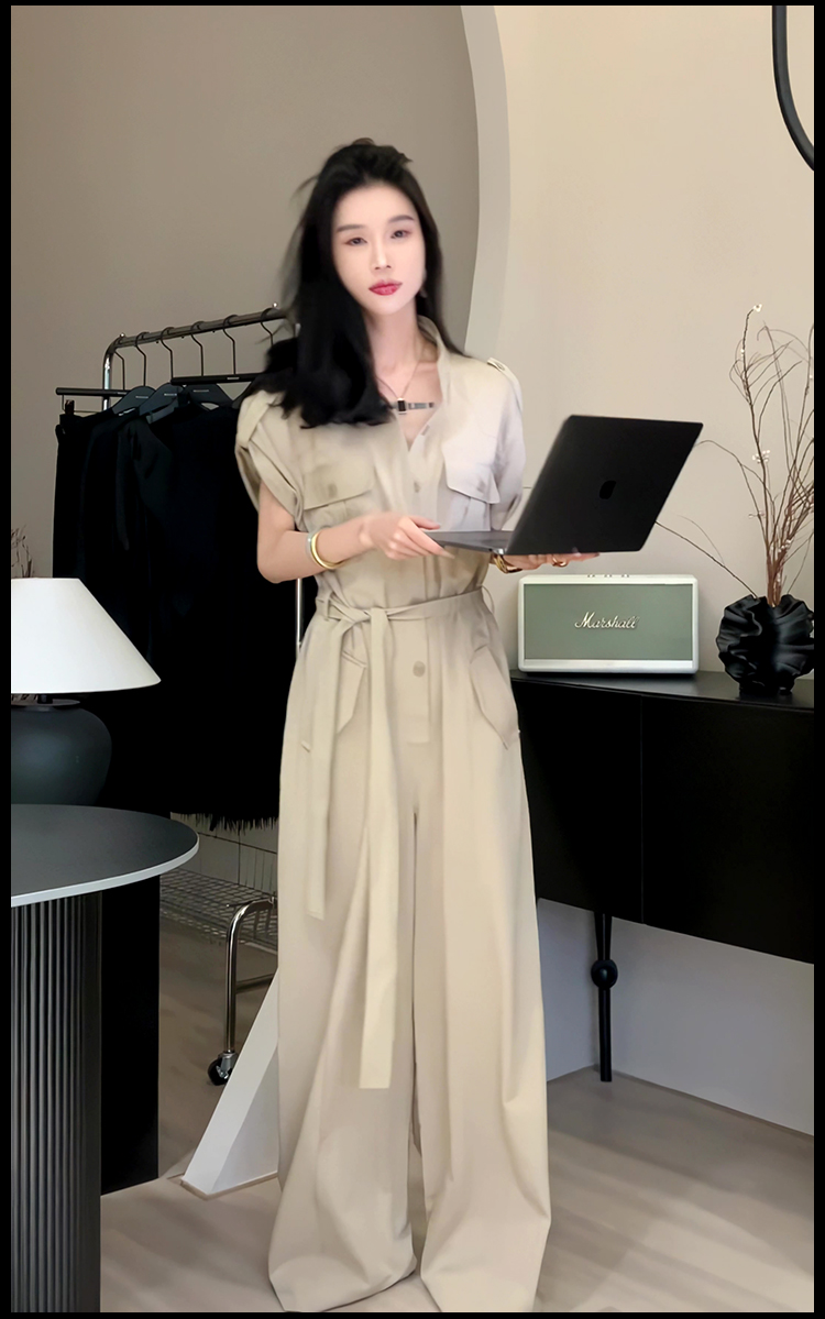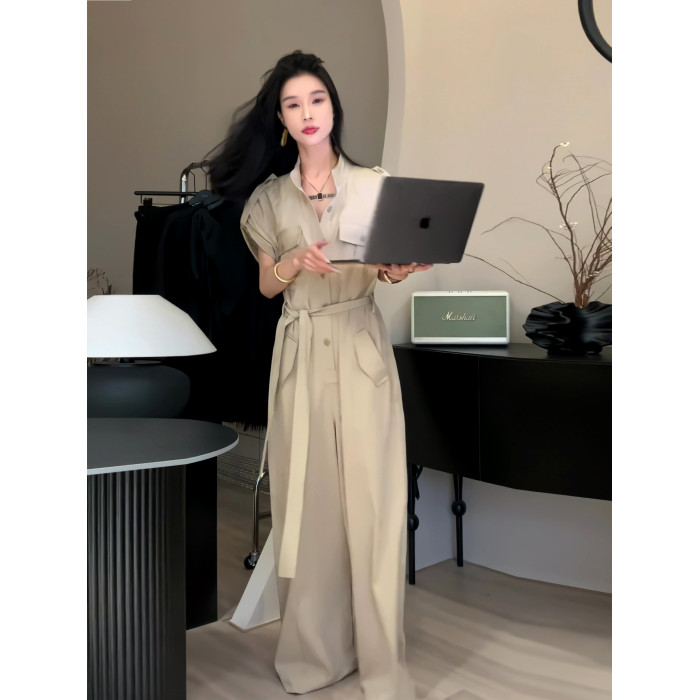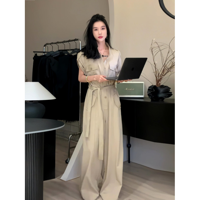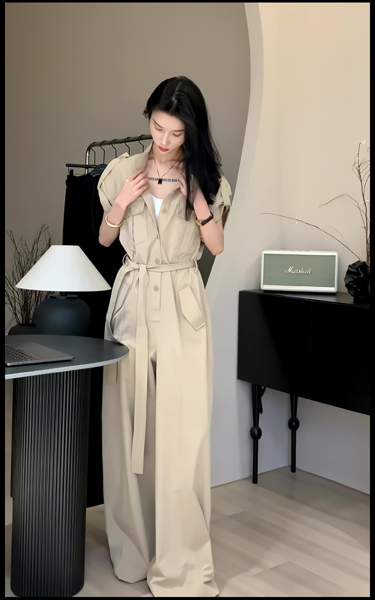 工裝連體褲女2025夏季薄款時尚寬松帥氣炸街顯高顯瘦連體衣濶腿褲