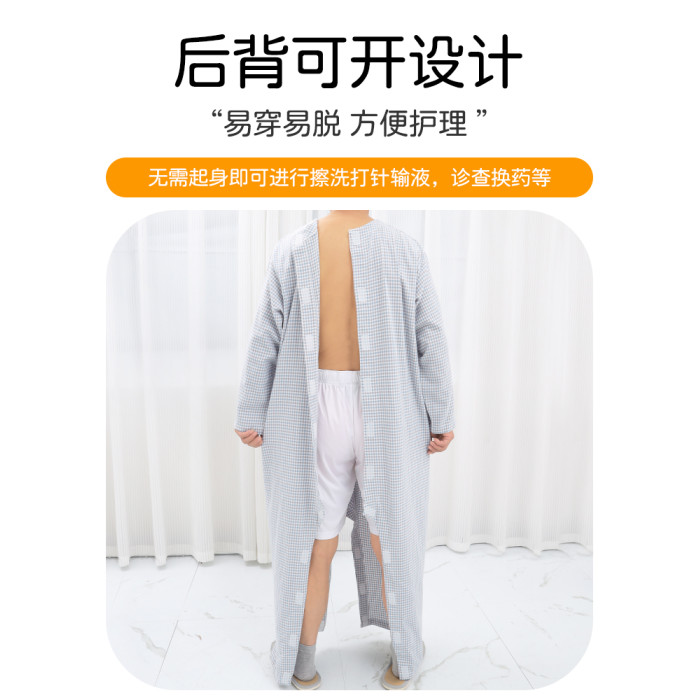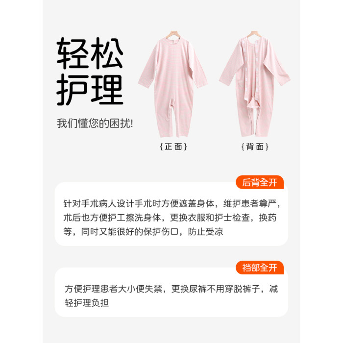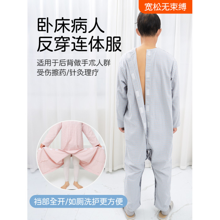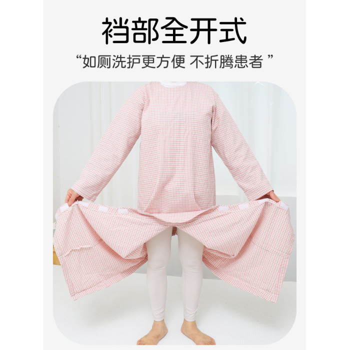失智老人反穿連體衣術後病人睡衣棉失禁老人開襠一體式連體褲春秋