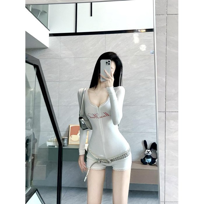 Gentle春季新款蕾絲印花修身彈力瑜伽褲健身服休閒辣妹連體衣