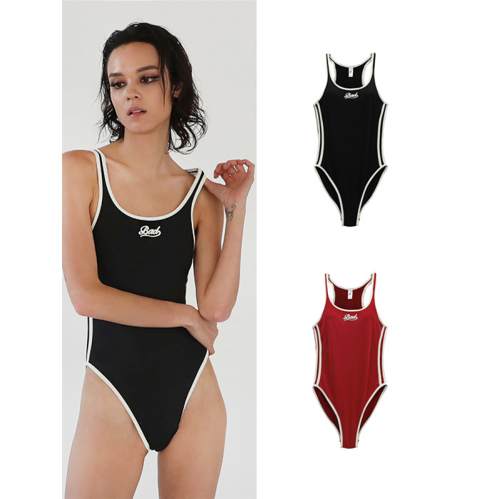badblood韓國吊帶運動連體衣刺綉性感辣妹三角連身褲露背泳衣