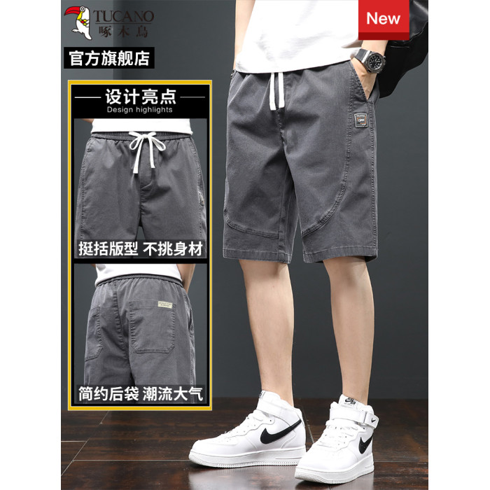 啄木鳥夏季短褲男潮牌寬松5分外穿大褲衩男士中褲薄款休閒五分褲Q