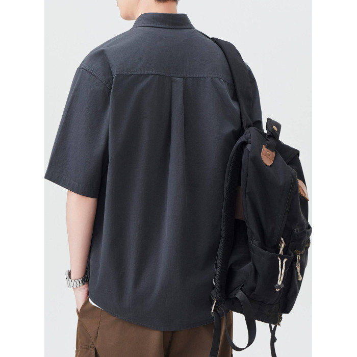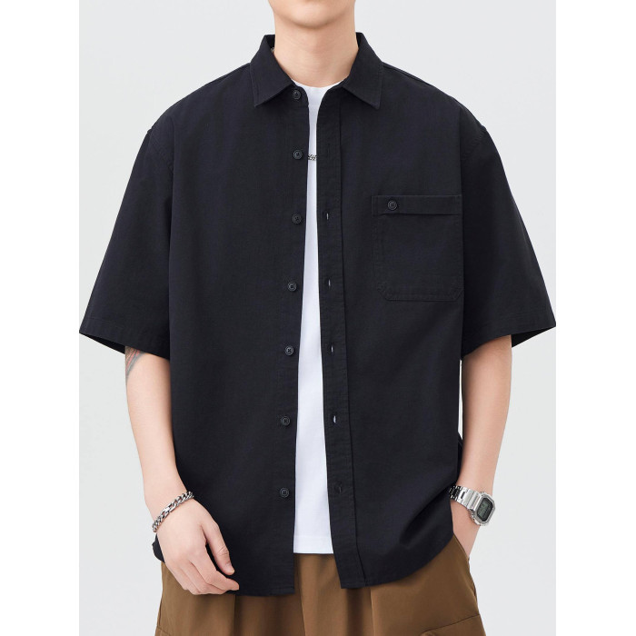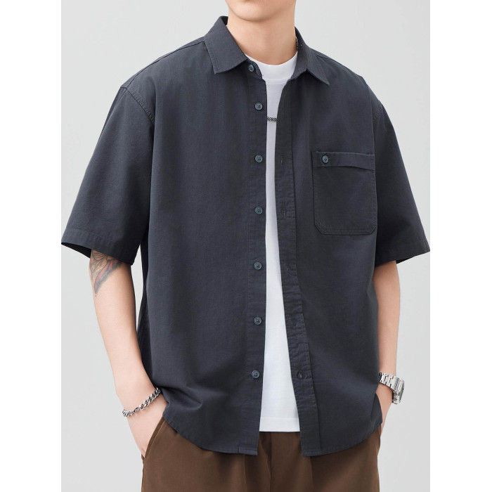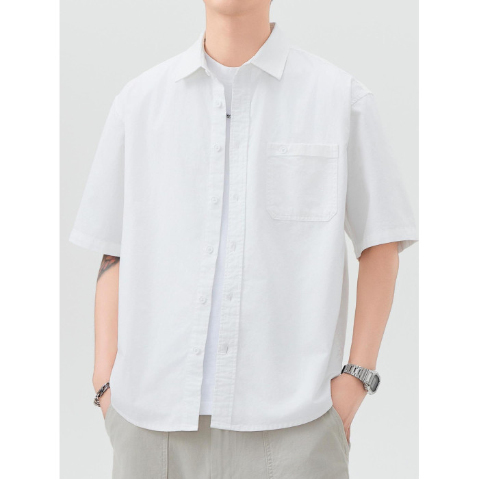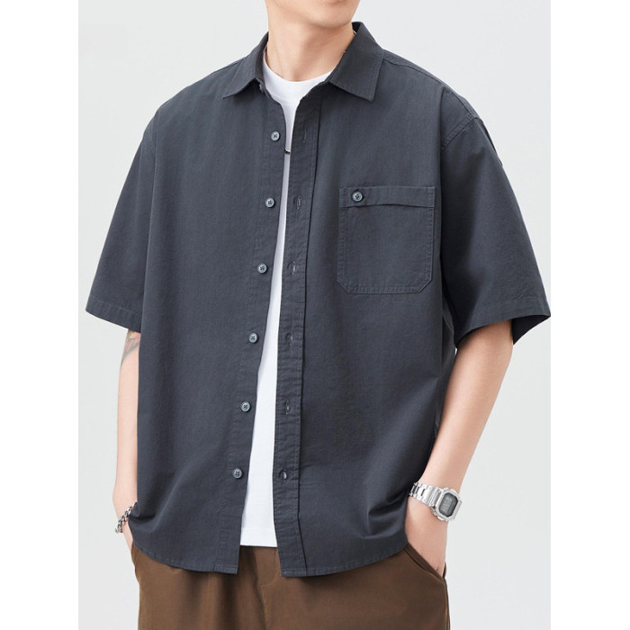 純棉短袖襯衫男2025夏季新款大碼寬松休閒外套上衣男生半袖襯衣