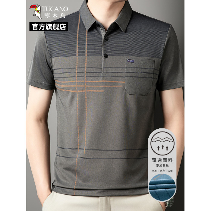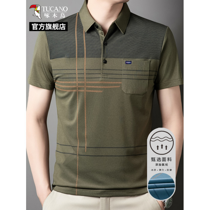 啄木鳥冰絲涼感polo衫男夏季中老年短袖爸爸裝商務休閒t恤上衣服C